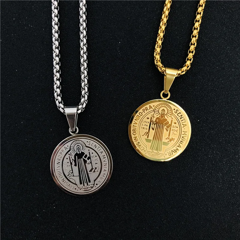 Ожерелье-медальон из нержавеющей стали San Benito для женщин золотистого цвета для мужчин металлический католический святой Бенедикт ожерелье с подвеской