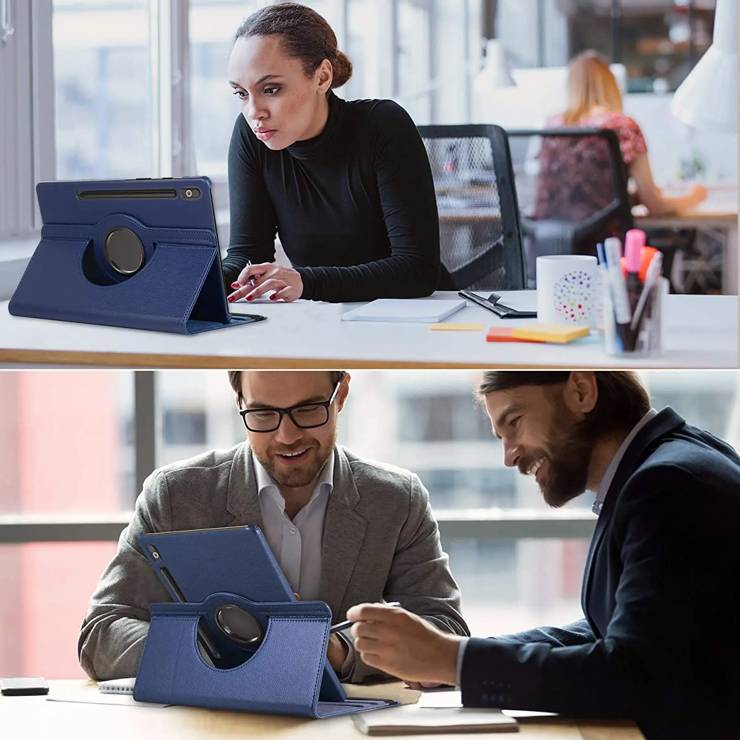 【 Вращающийся на 360 градусов Поворотный Чехол 】 вращающаяся на 360 градусов конструкция в поворотный Чехол для гибкого пейзажа и портретного просмотра. Две противоскользящие канавки поддерживают 3 гибких положения для просмотра (2 пейзажа, 1 портрет)