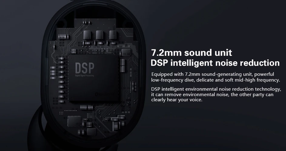 Оснащен 7,2 мм звук-генераторный агрегат, мощный низкочастотный погружение, тонкие и мягкие середины высокой частоты. Интеллектуальная технология снижения уровня шума для окружающей среды DSP, она может удалять технологию снижения уровня шума окружающей среды, она может удалять шум окружающей среды, другие вечерние четко слышат ваш голос.