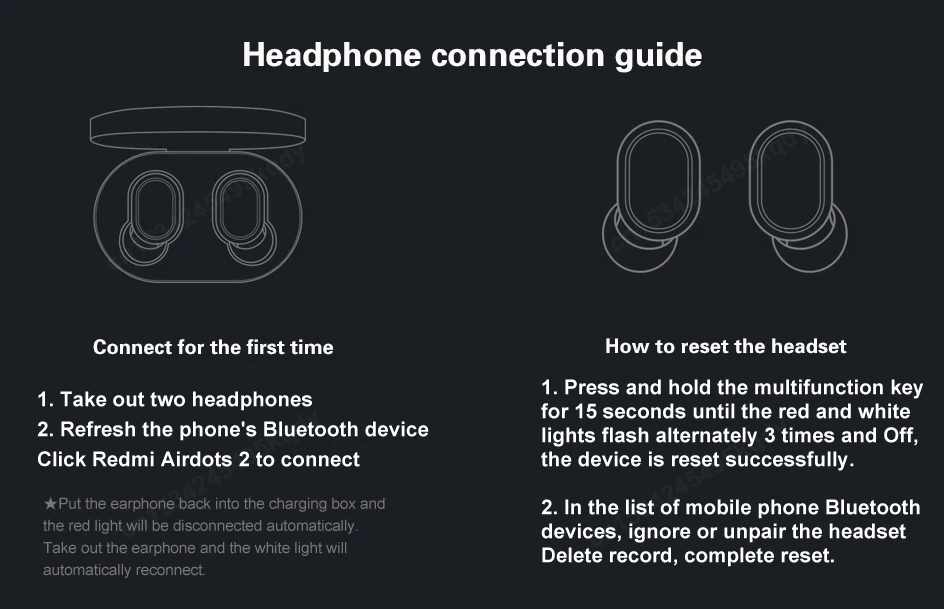 1. У меня есть два мобильных телефона. Можно ли одновременно подключить два мобильных телефона Redmi AirDots 2? Redmi AirDots 2 не может Подключать два телефона одновременно и не поддерживает один. 2. Мой Redmi AirDots 2 водонепроницаемый? Гарнитура может быть IPX4 водонепроницаемой, а зарядное устройство не является водонепроницаемым. 3. Могу ли я регулировать громкость с Redmi AirDots 2? Сама гарнитура не может регулировать громкость и должна регулироваться телефоном. 4. Мой Redmi AirDots 2 двухканальная гарнитура? Redmi AirDots 2 использует bluetooth-чип Raychem RTL8763BFR для поддержки двухканального стерео. 5. В 10 метрах от телефона, я также могу управлять музыкой через Redmi AirDots 2. Звонки и другие функции? Да, Redmi AirDots 2 может быть подключен до 10 метров в безбарьерной среде. Пожалуйста, ищите Интернет-магазин Mijia, чтобы купить наушники 6. Как я могу увидеть, сколько стоят мои Redmi AirDots 2? Поддерживает просмотр мощности гарнитуры на телефонах Apple и Android и показывает только мощность основной гарнитуры. 7. Можно ли подключить мой Redmi AirDots 2 к браслету Xiaomi или другому браслету Bluetooth? Он не поддерживается, потому что гарнитура и браслет Bluetooth относятся к принимающему терминалу, поэтому они не могут быть подключены друг к другу. 8. Мой Redmi AirDots 2 отключится автоматически? Когда гарнитура находится за пределами зарядного устройства и нет подключения и работы, она автоматически отключится через 5 минут. 9. Поддерживает ли мой Redmi AirDots 2 сторонние вечерние голосовые сообщения? Поддержка системы iOS, система Android использует микрофон телефона по умолчанию при вставке голоса. 10. Мой Redmi AirDots 2 стабильный, когда я разговариваю, слушайте песни или играю в игры? Соединение стабильное. Если есть большое количество Wi-Fi соединений, сигналов 4G, мощных приборов и т. д., которые могут вызвать помехи, может возникнуть ситуация заикания и прерывистого действия. 11. Сколько времени потребуется, чтобы играть в игру с двумя наушниками одновременно? Зависит от среды использования, сети и мобильный телефон кодека скорости, это вызовет различные задержки, когда мобильный телефон передает аудио данные в наушники. 12. Можно ли заряжать наушники влево и вправо? Сначала проверьте, имеет ли зарядное устройство питание, проверьте, затонул ли зарядный блок зарядного устройства и грязная ли точка зарядки наушников. Если приведено выше, поместите наушники в зарядную коробку, чтобы проверить, нормально ли они заряжаются. Если вы все еще не можете взимать плату, пожалуйста, свяжитесь со службой послепродажного обслуживания клиентов. 13. Примечание: Из-за характеристик bluetooth-гарнитуры электромагнитные помехи в окружающей среде могут вызвать короткое прерывание соединения. Когда устройство выполняет функцию отображения и одновременно передает звуковой сигнал Bluetooth, может возникнуть задержка в звуковом сигнале и видеосигнале, это означает, звук и изображение могут не синхронизироваться