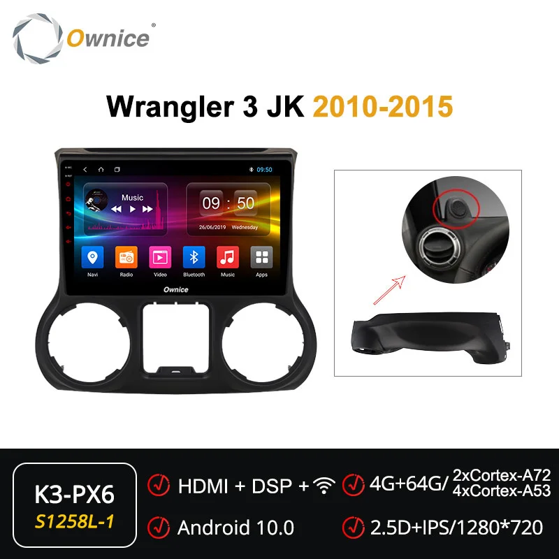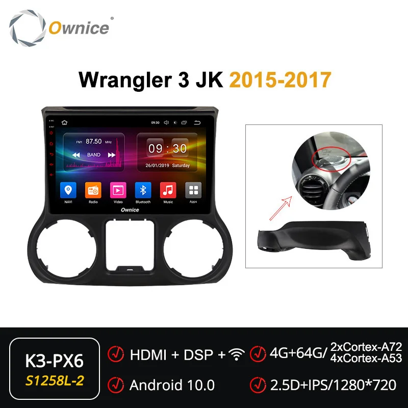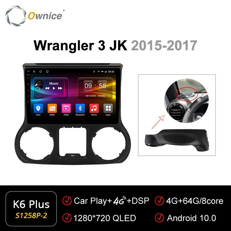 6G + 128G Ownice 4G LTE 8 Core Android 10,0 SPDIF DSP автомобильный DVD плеер радио для Jeep Wrangler 3 JK 2010 2012 2015 Подходит для Для Jeep Wrangler 3 JK 2010 2012 2015 Если оригинальное автомобильное радио имеет функцию ниже, совместим ли блок Ownice Head? * Вариант 1-кабель XC251A, поддержка: управление рулевым колесом; Открытие двери дисплея, обратная Направляющая линия, информация о режиме автомобиля.* Опция 2-кабель XC251B, поддержка: Управление рулевым колесом; Открытие двери дисплея, обратная Направляющая линия, информация о режиме автомобиля; Оригинальный серийный усилитель. Внимание: Приведенная выше информация только для справки, иногда она может не быть совместима с некоторыми автомобилями, потому что автомобили производятся в разных странах в разных летних вариантах, спасибо за понимание. K6 Plus 128G --- UIS7862 | Android 10,0 | 8 ядер (A75 * 2 + A55 * 6) | 6G + 128G | 2.5D + IPS QLED1280 * 720 | Радио 7708 | Усилитель 7851LK6 Plus 64G --- UIS7862 | Android 10,0 | 8 ядер (A75 * 2 + A55 * 6) | 4G + 64G | 2.5D + IPS QLED1280 * 720 | Радио 7708 | Усилитель 7851LK6 плюс 32G ---- UIS7862 | Android 10,0 | 8 ядро (A75 * 2 + A55 * 6) | 3G + 32G | 2.5D + IPS QLED1280 * 720 | Радио 7708 | Усилитель 7388K3-PX5 ------ PX5 | Android 10,0 | 8 ядер | 2G + 32G | 2.5D + TN 1024*600 | Радио 7708 | Усилитель 7851LK3-PX6 ------ PX6 | Android 10,0 | 6 ядер (A75 * 2 + A53 * 4) | 4G + 64G | 2.5D + IPS 1280*720 | Радио 7708 | Усилитель 7851LK1-Low ------ AC8227L | Android 6,0 | 4 ядра | 1G + 16G | 2.5D + TN 1024*600 | Радио 7786 | Усилитель 7388K1-High ------ AC8227L | Android 8,1 | 4 ядра | 2G + 16G | 2.5D + TN 1024*600 | Радио 7786 | Усилитель 7388