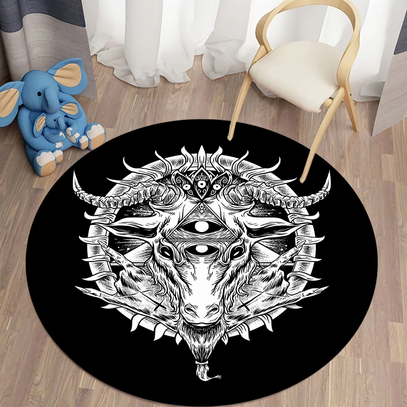 Круглый ковер с рисунком сатаны для гостиной, коврики для спальни, коврик для кухни, коврик для двери, нескользящий детский фланелевый ковер