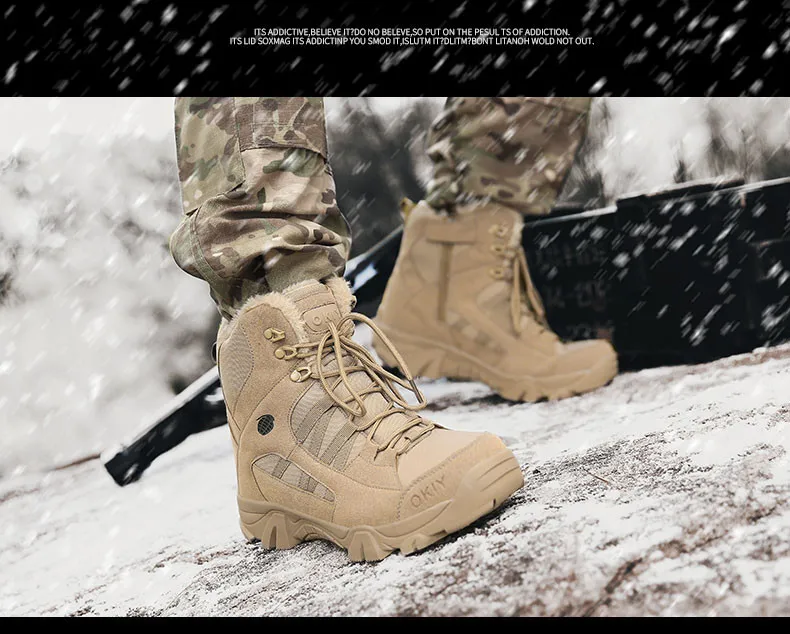 Новинка; Теплые плюшевые зимние ботинки; Нескользящие мужские рабочие ботинки; Водонепроницаемые зимние мужские ботинки; Уличные ботинки-дезерты; Мужские армейские ботинки; Ботильоны