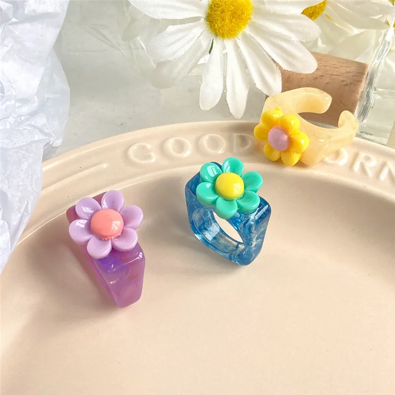 Новинка 2021, милое кольцо в виде цветка, акриловые кольца из смолы...
