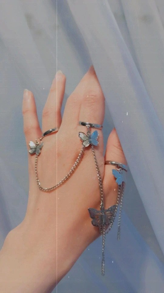 Модные кольца в стиле панк с цепью и бабочкой, многослойные крутые ...