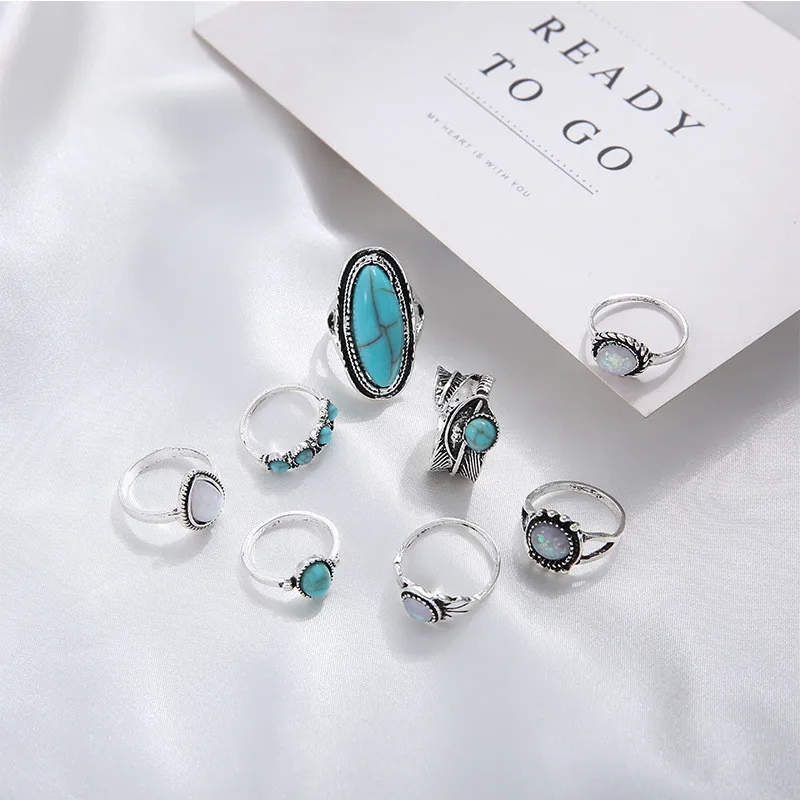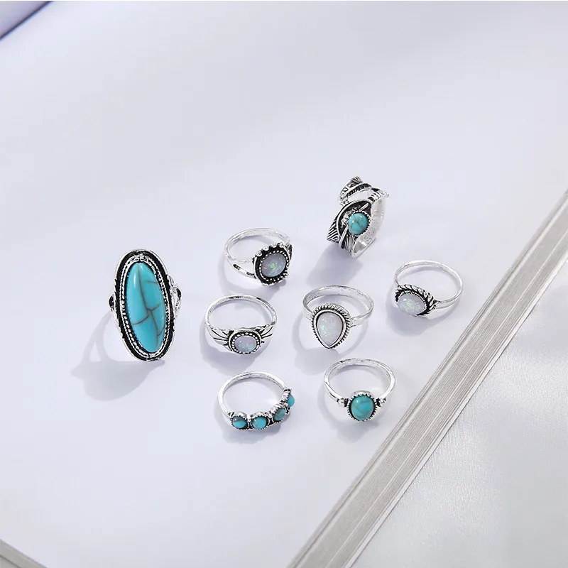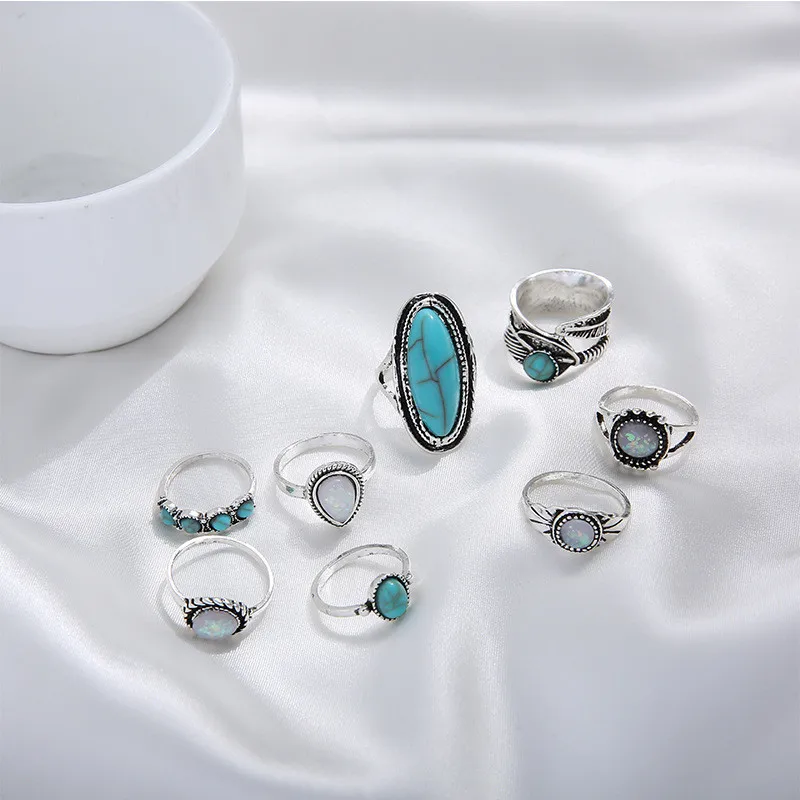 Набор Колец TOBILO в богемном стиле Женский, Винтажные Ювелирные украшения с большим камнем в стиле панк, цветочные листья, свадебные украшения