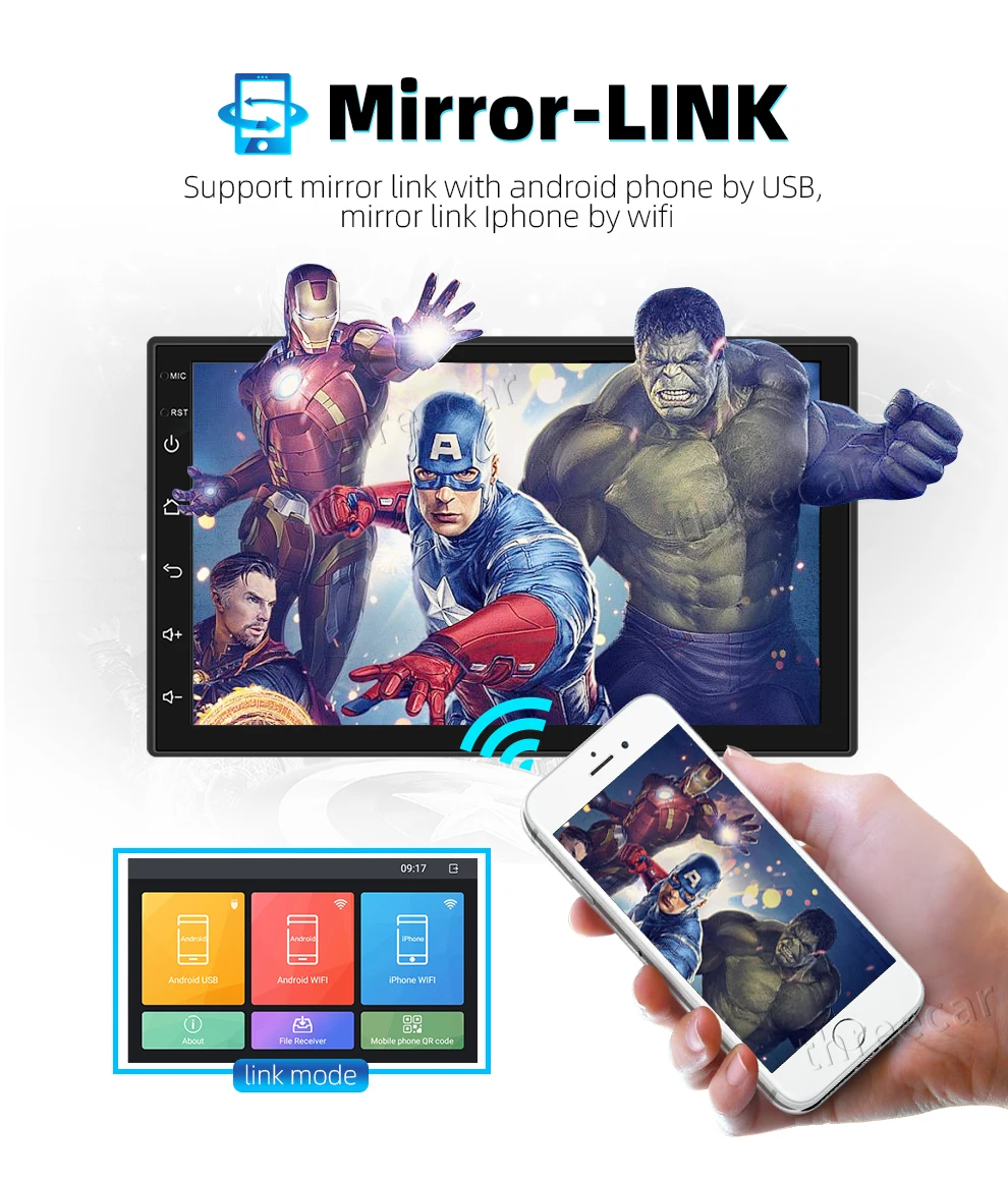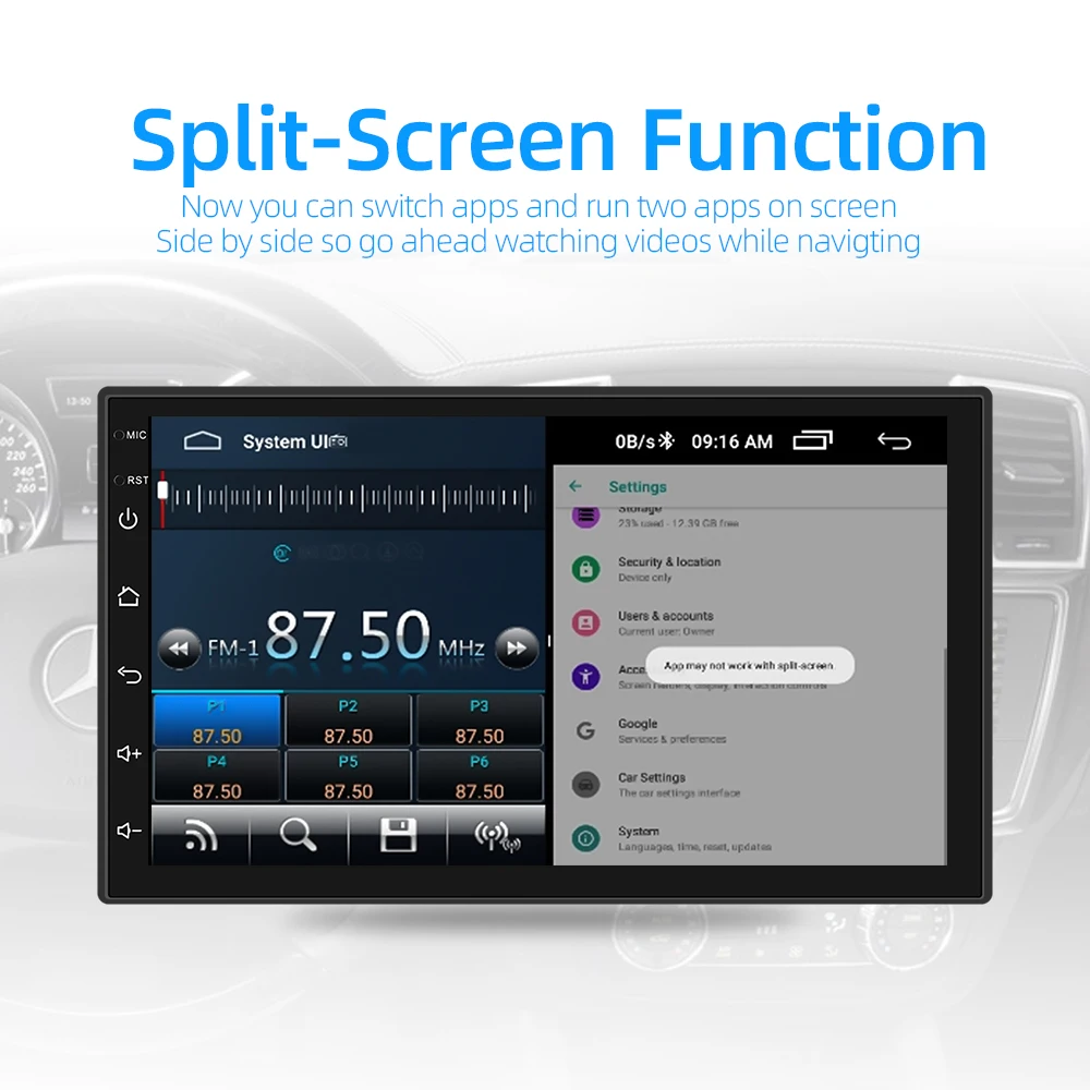 1. Четырехъядерный процессор2. ОС Android 9,0 (новейшая версия)3. Встроенный av-выход (поддержка подключения всех видов к монитору подголовника)4, встроенный 1G/2G RAM и 16G/32G ROM5, встроенный 2USB вход, он может воспроизводить музыку/Кино/фото с местного диска или подключенной tf-карты.6, 2.5D экран, сплит-экран