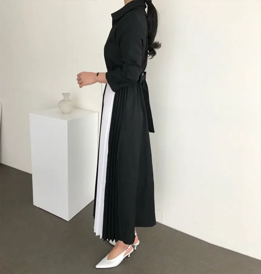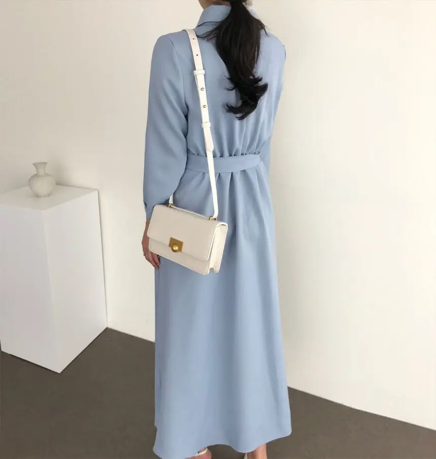 Новое черное платье для женщин, Осеннее однобортное белое однотонно...