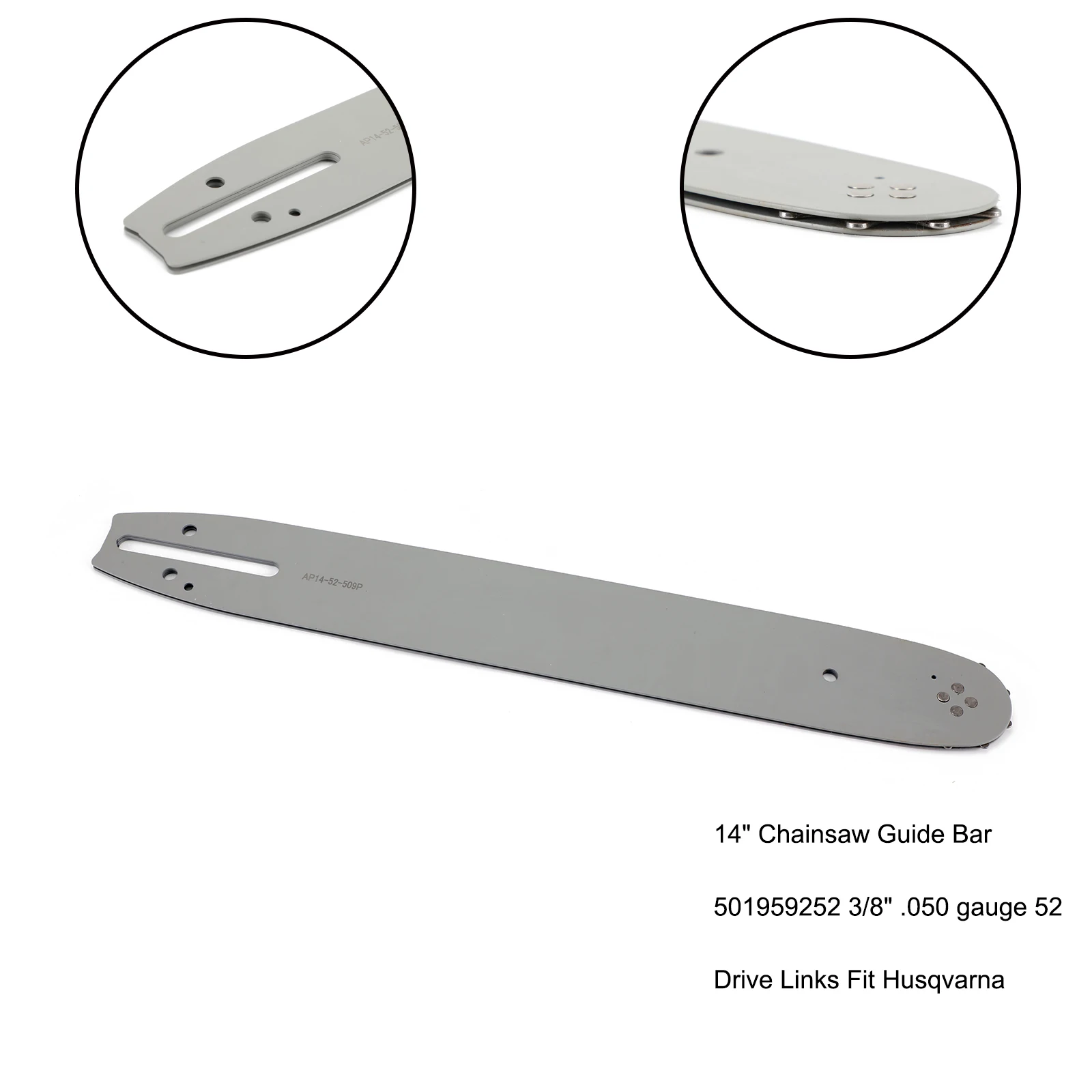 Artudatech, 14 дюймов, направляющая цепной пилы Bar 501959252 38 дюймов. 050, 52 звена, подходит для Husqvarna