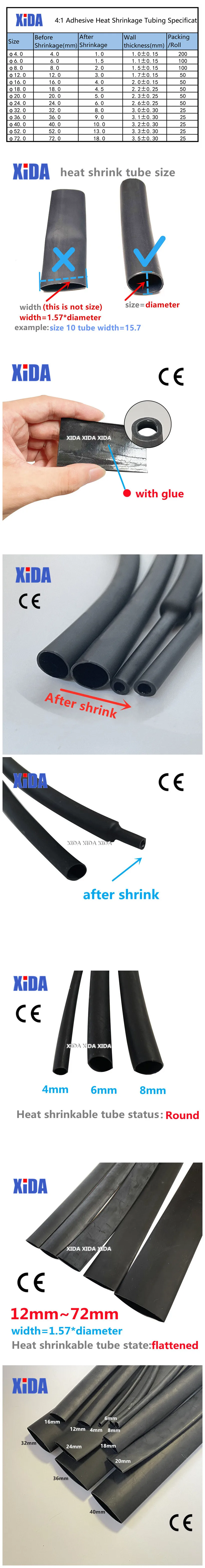 1 метр 4:1 термоусадочная трубка с клеем Термоусадочная трубка диаметр 4 6 8 16 24 40 52 72 термоусадочная трубка