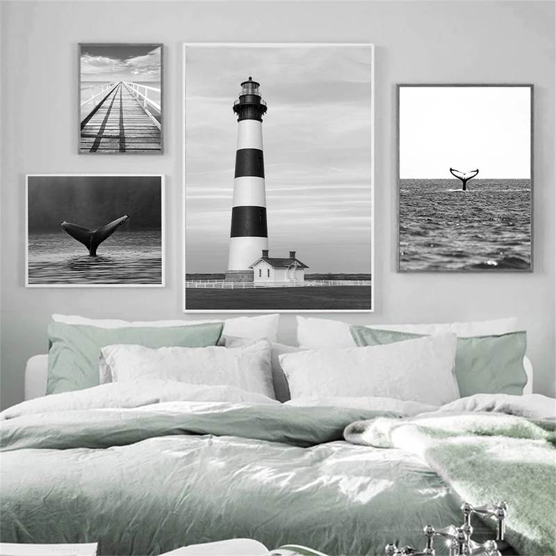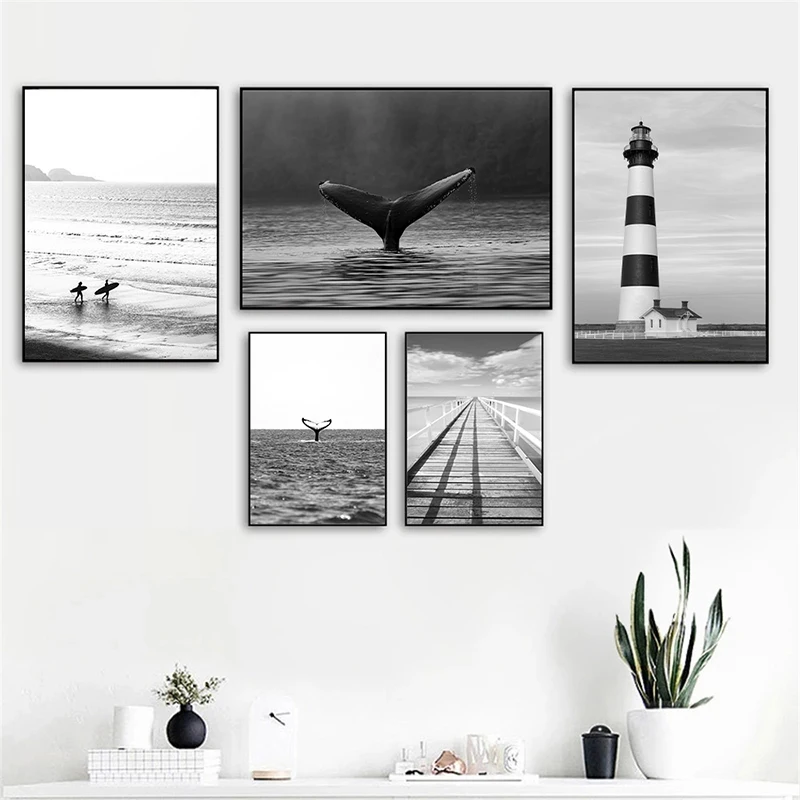 Настенный плакат с изображением Морского Пейзажа, черного и белого цветов
