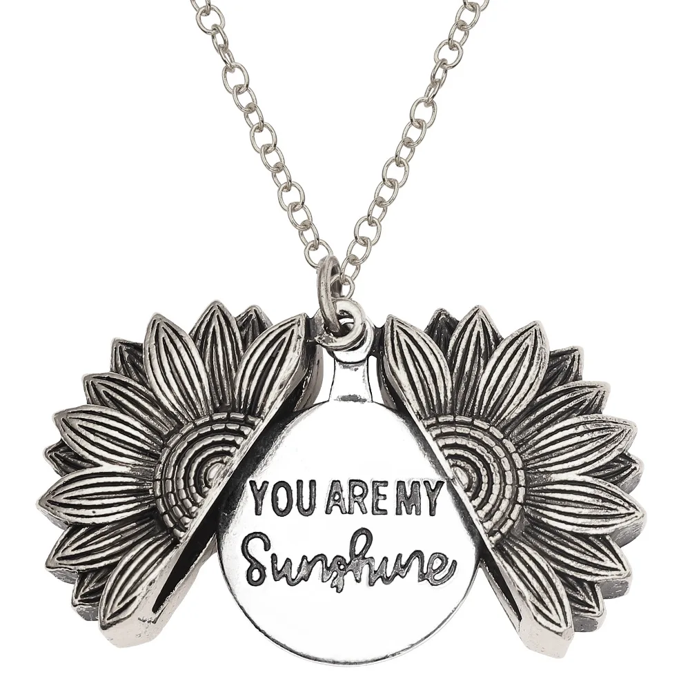 Ожерелье с подвеской в виде подсолнуха, с надписью и гравировкой