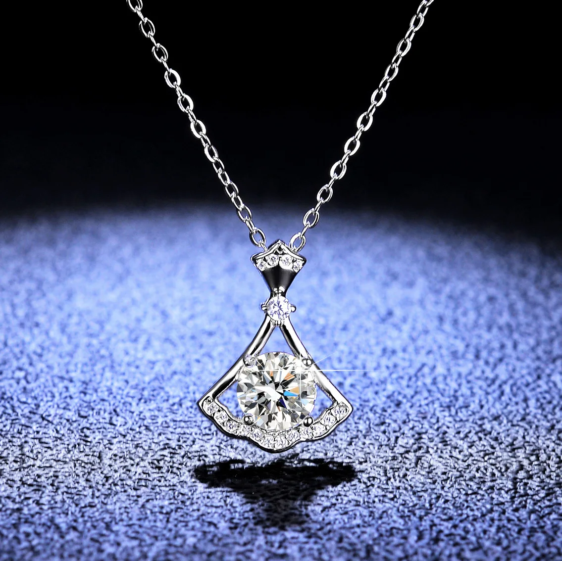 Цепочка с кулоном из серебра 925 пробы, с муассанитом, 2 карата