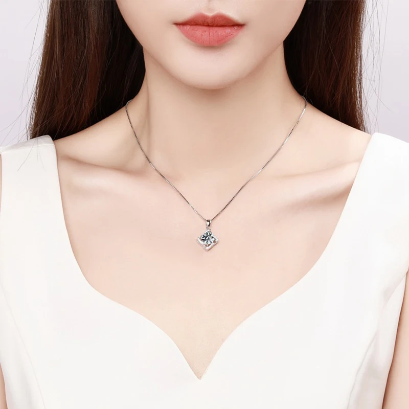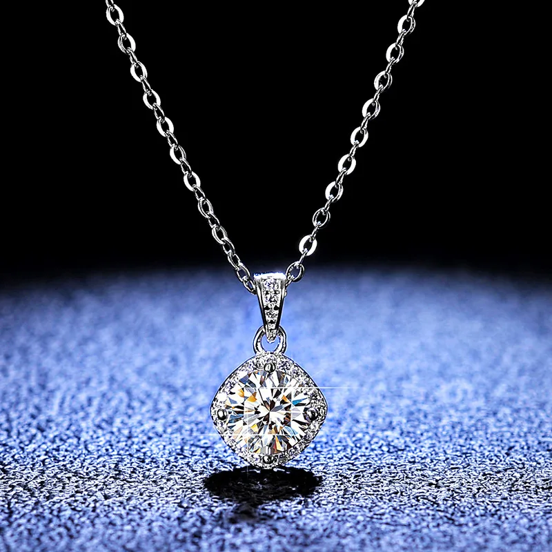 Ожерелье из настоящего серебра 925 пробы с муассанитом, лабораторный кулон с бриллиантом 1 карат, подарок для женщин и мужчин, ювелирные украшения