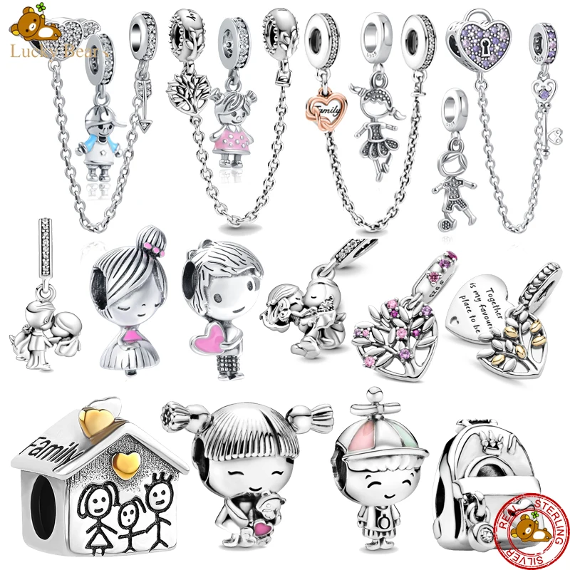 Бусины из серебра 100% пробы для пар семейного дерева для мальчиков и девочек, подходят к оригинальным шармам Pandora, серебряный браслет 925 пробы, Женские Ювелирные изделия сделай сам в подарок