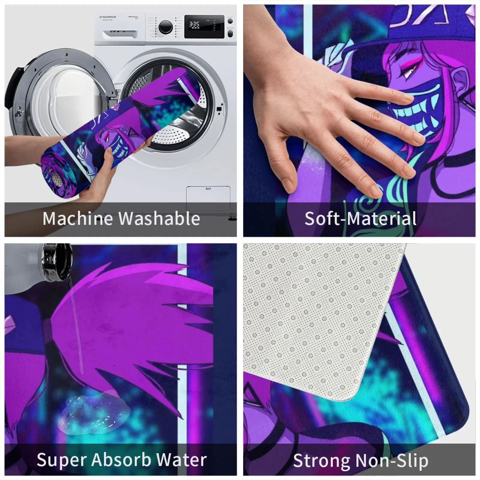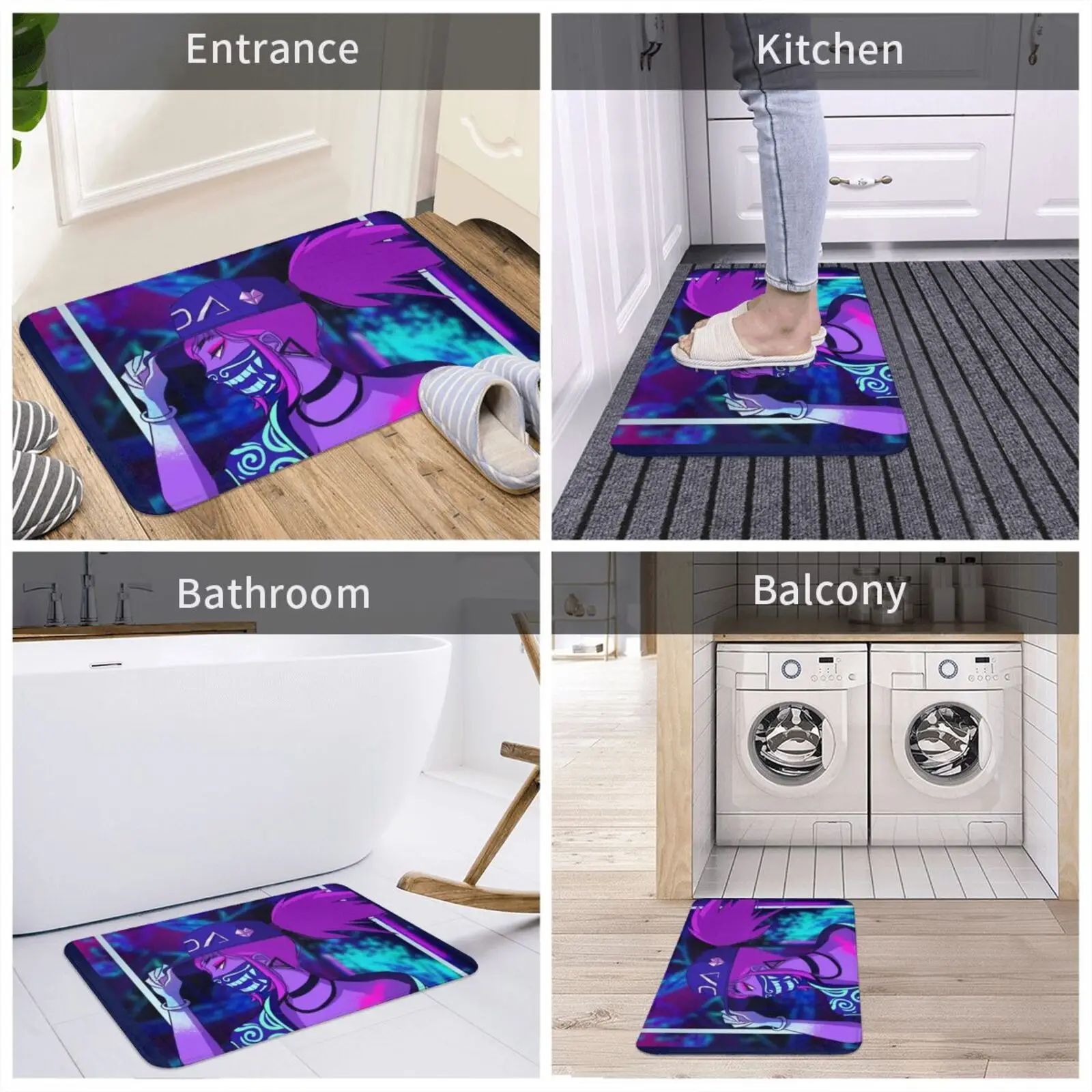 Коврик K Da Akali, коврик, подушка, Мягкий Нескользящий Коврик Akali Kda фиолетового, синего цвета, Kpop, звезды, граффити, краска-распылитель