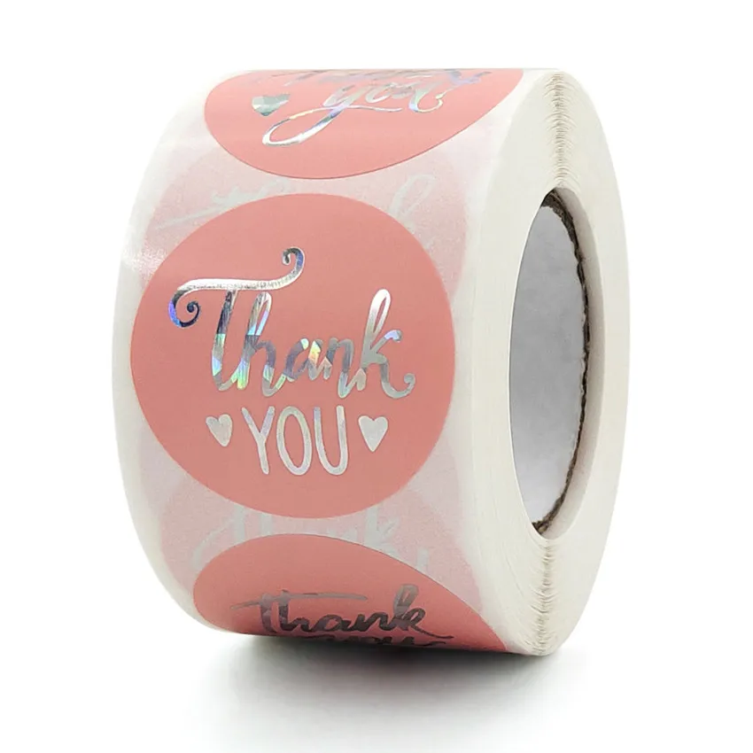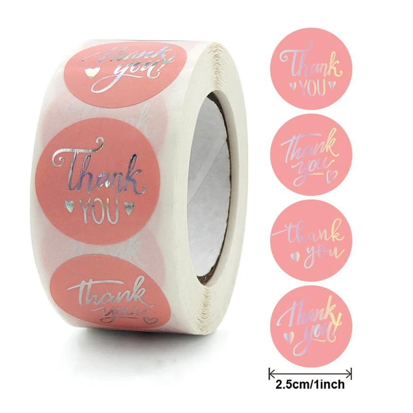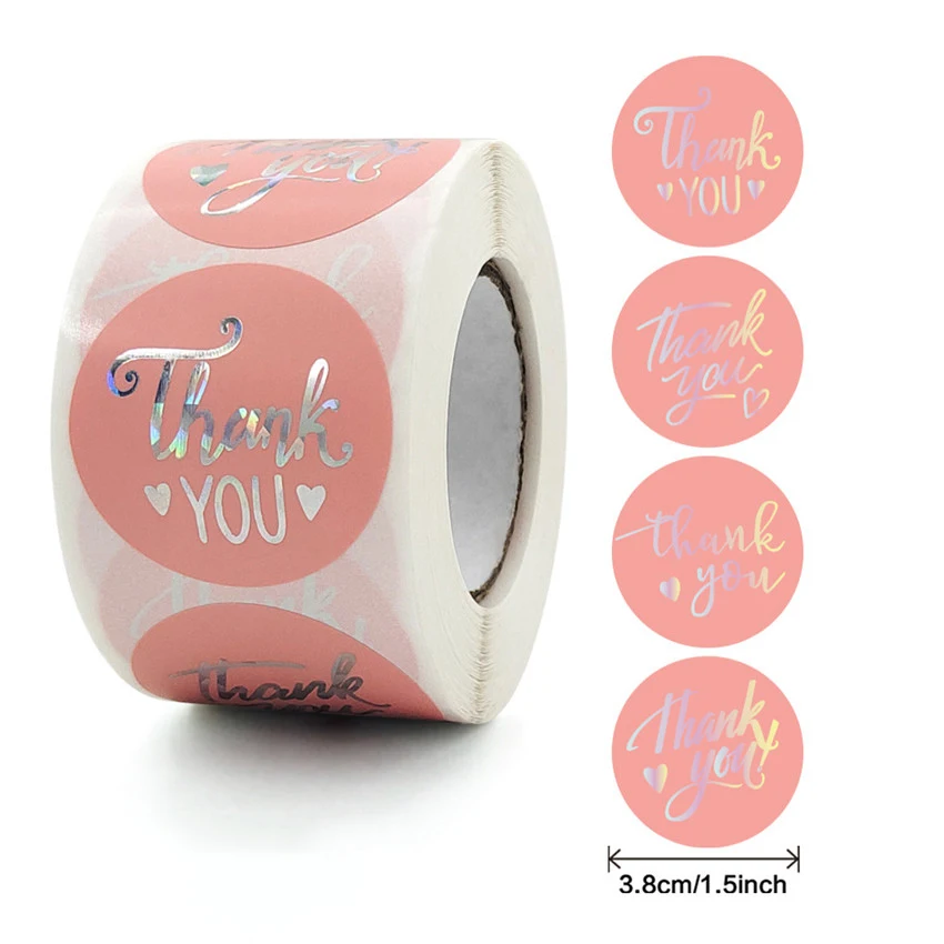 100-500 шт. 1/1, 5 дюймов, розовая наклейка с благодарностью, конверт для выпечки этикетки для печати, наклейка для декора вечеринки, наклейка для маленького магазина, подарочная упаковка