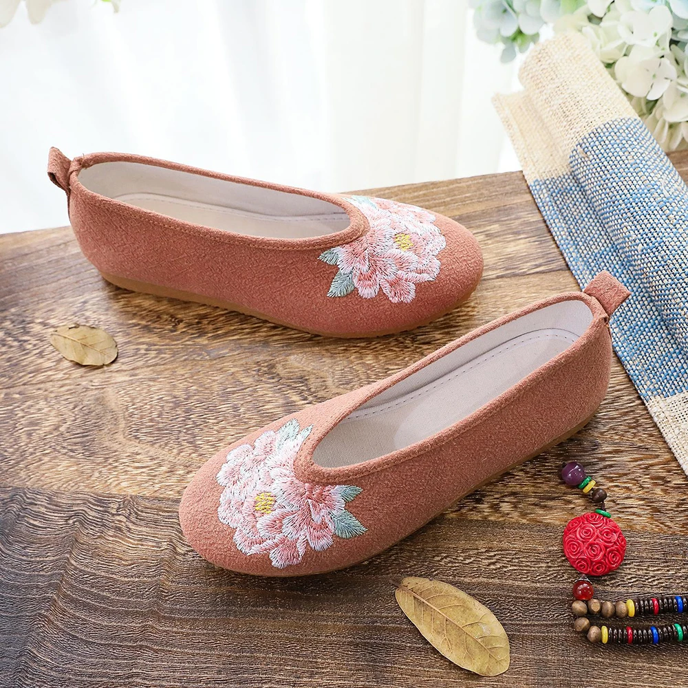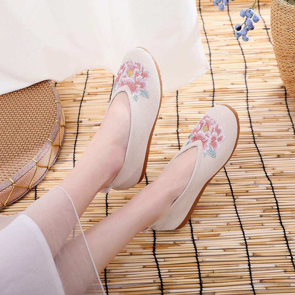 Балетки женские с цветочной вышивкой, из хлопчатобумажной ткани