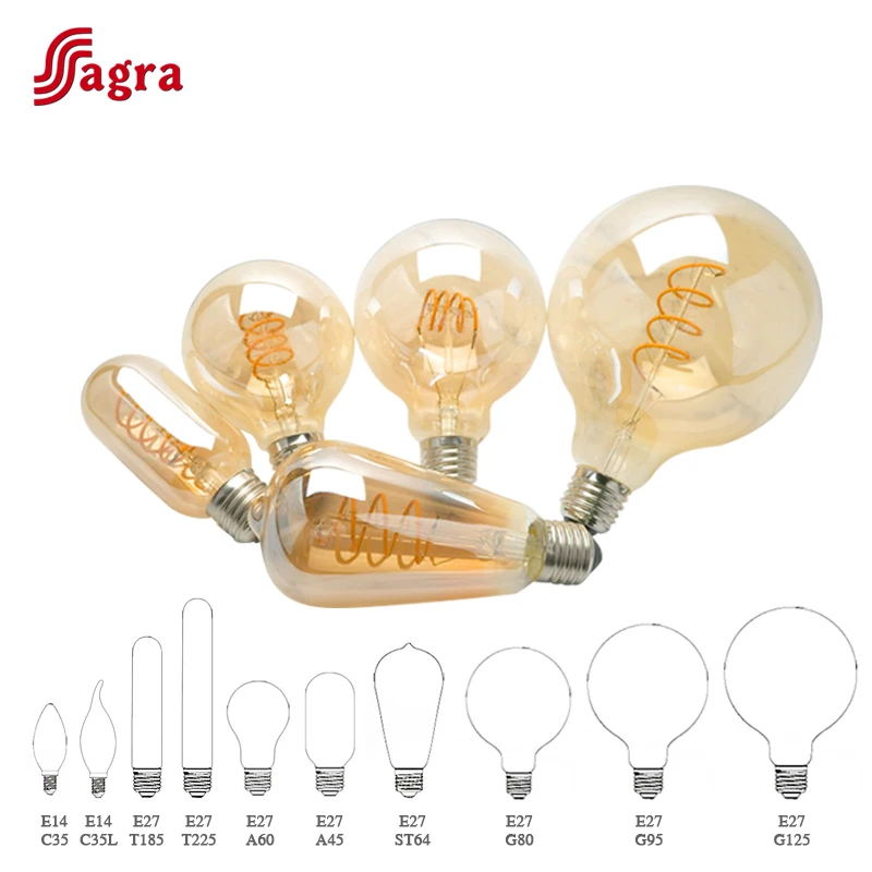 Светодиодный лампа накаливания C35, A60, T45, ST64, T185, T225, G80, G95, G125, спиральсветильник лампа 4 Вт, 2200K, 220 В, Ретро Винтажные декоративные лампы Эдисона