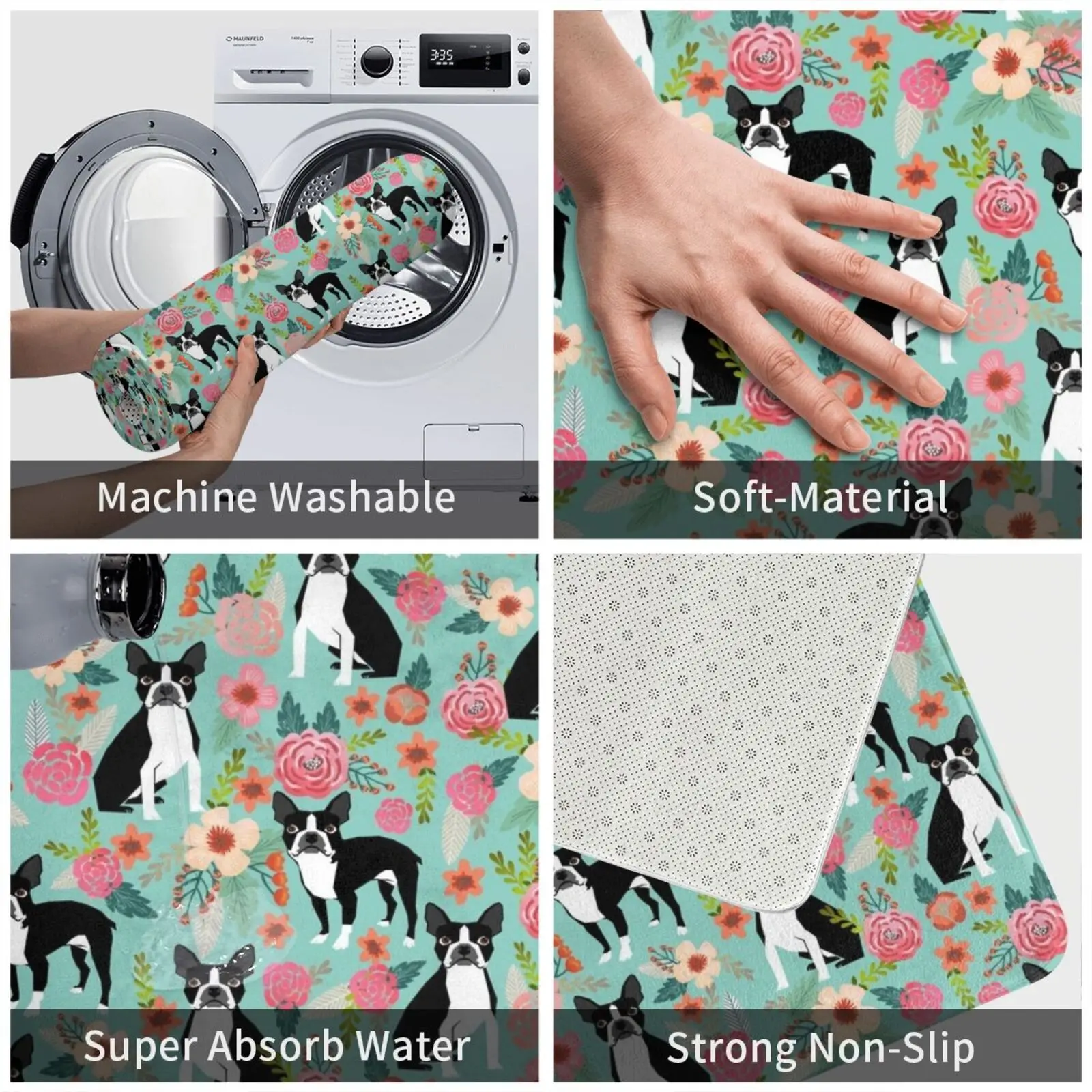 Ковер Boston Terrier с цветочным рисунком-милый дизайн собаки, ковер Boston Terrier, мягкая Нескользящая подушка Boston Terrier