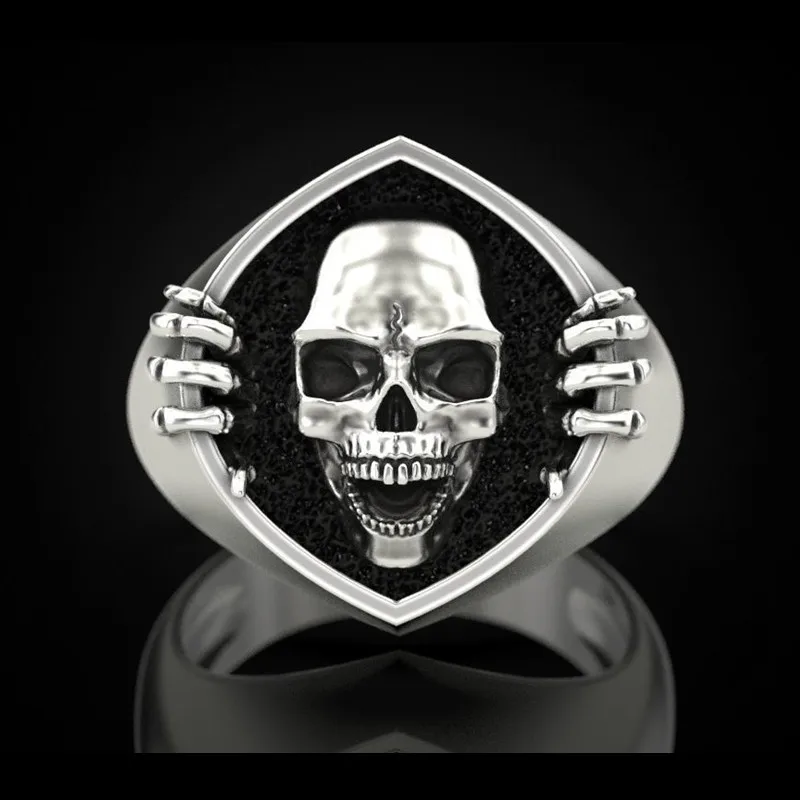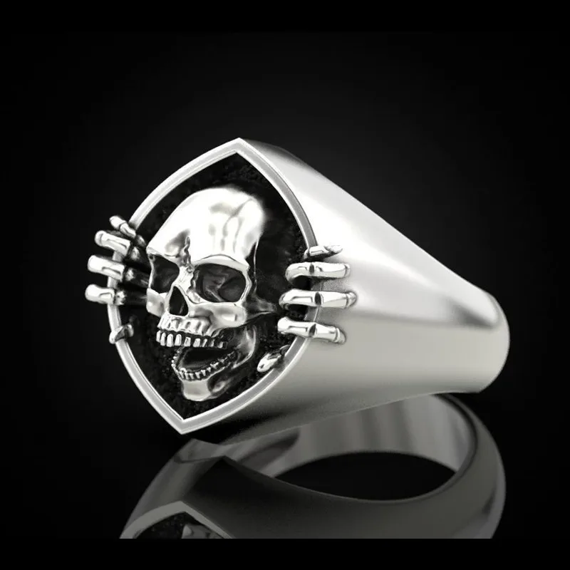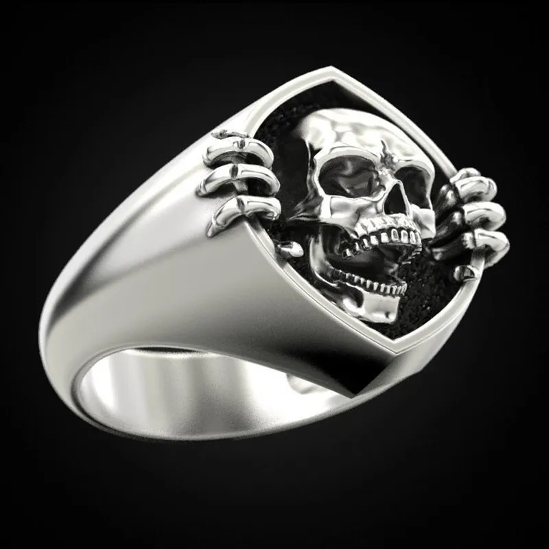 Новинка, винтажные креативные серебряные кольца в виде черепа для мужчин, модные ювелирные изделия в стиле панк, кольцо на палец в виде скелета для Байкерской вечеринки, подарок