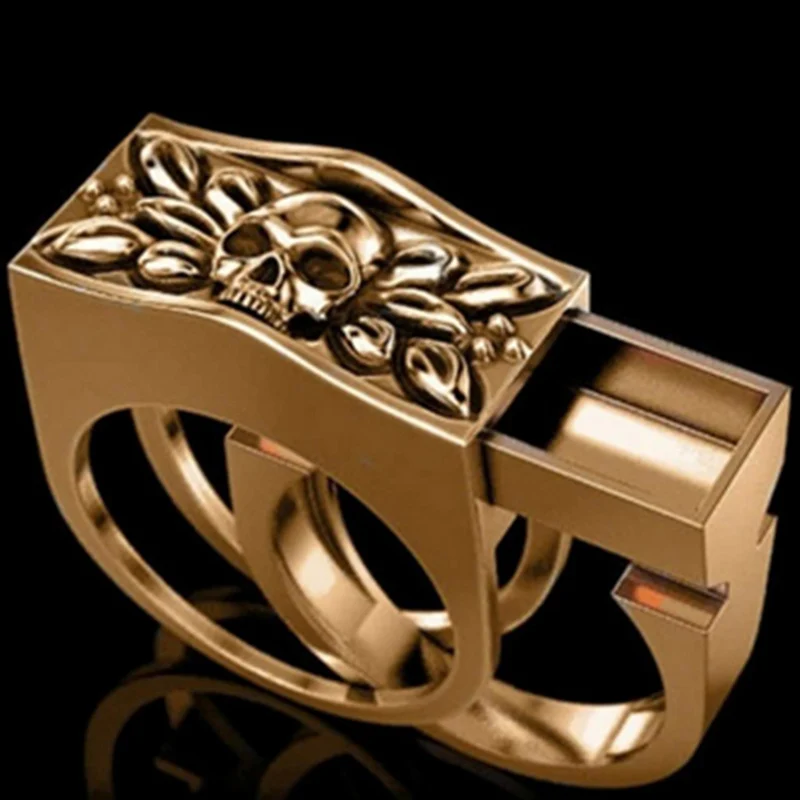 Новые винтажные золотистыесеребристые кольца с черепом для мужчин, модные ювелирные изделия в стиле панк, подарочное кольцо с отсеком, медальон, гроб, скелет, кольцо