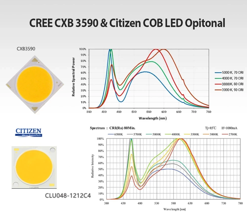 ХарактеристикиReal Full Specturm CREE CXB3590 Citizen 1212 COB LED grow light