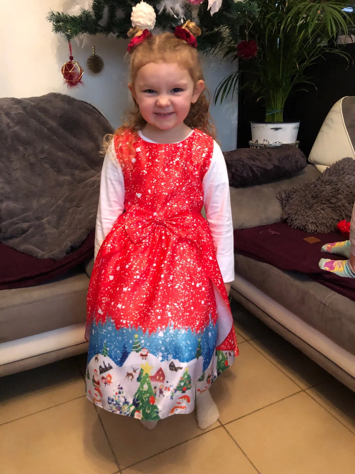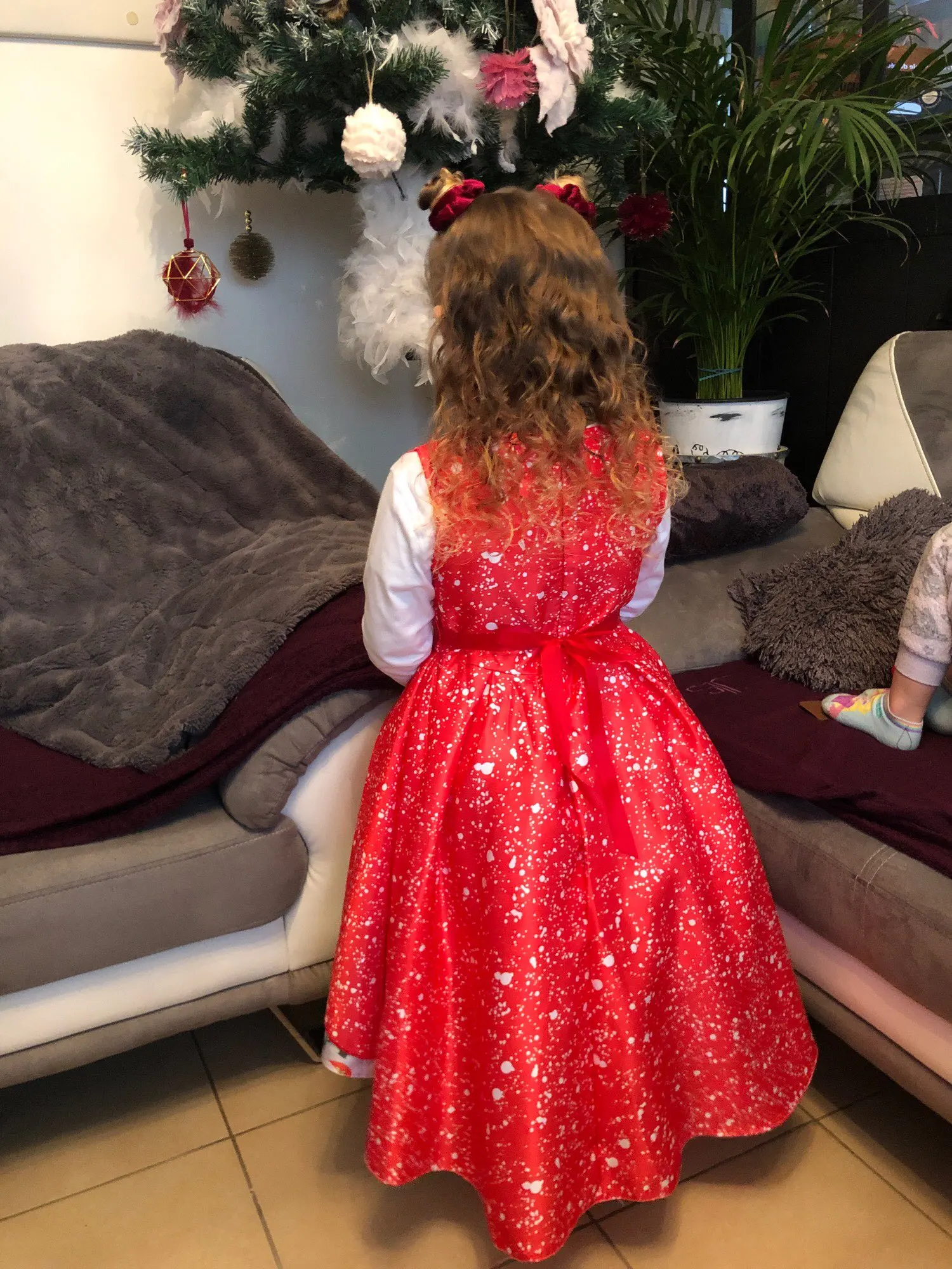 Красивое платье немного маленького размера, я рекомендую брать размер выше подходящего размера, чтобы ребенок был удобным.