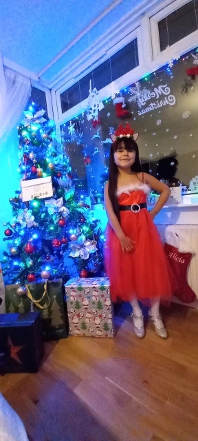 magnifique robe ,ma fille met du 6 ans j ai pris la robe en 6 ans (130cm) vraiment juste une taille au dessus aurait etait mieu. recu en 10jours le top