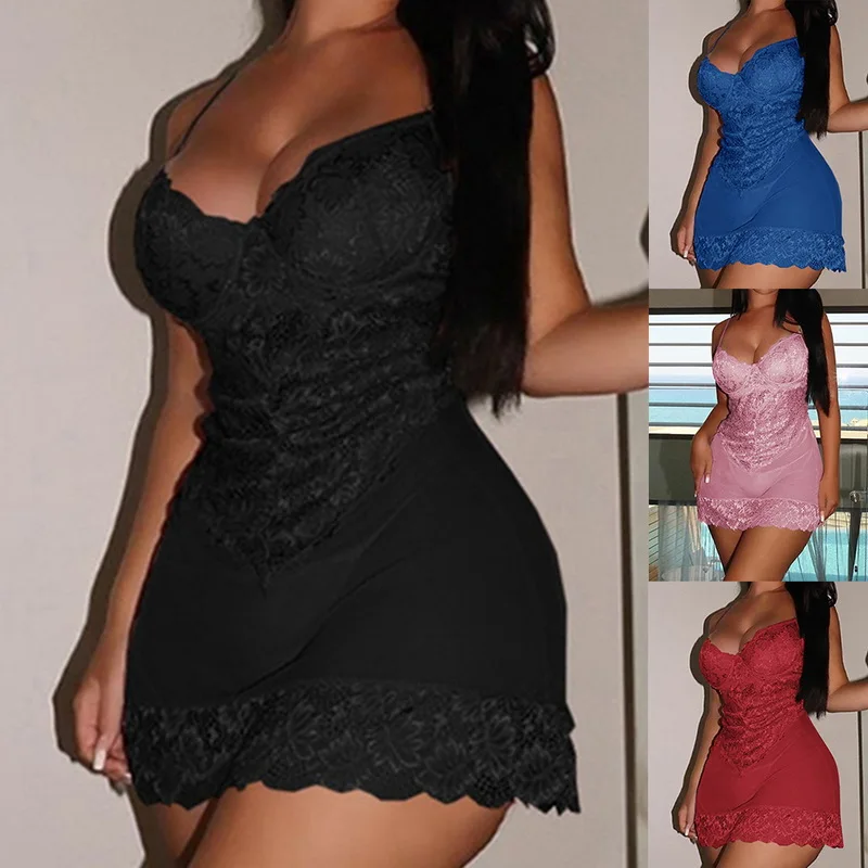 2021 Сексуальная кружевная женская ночная рубашка с открытой спиной Ночная рубашка комбинации на бретельках ночная рубашка с V-образным вырезом кружевное белье нижнее белье сексуальная ночная рубашка