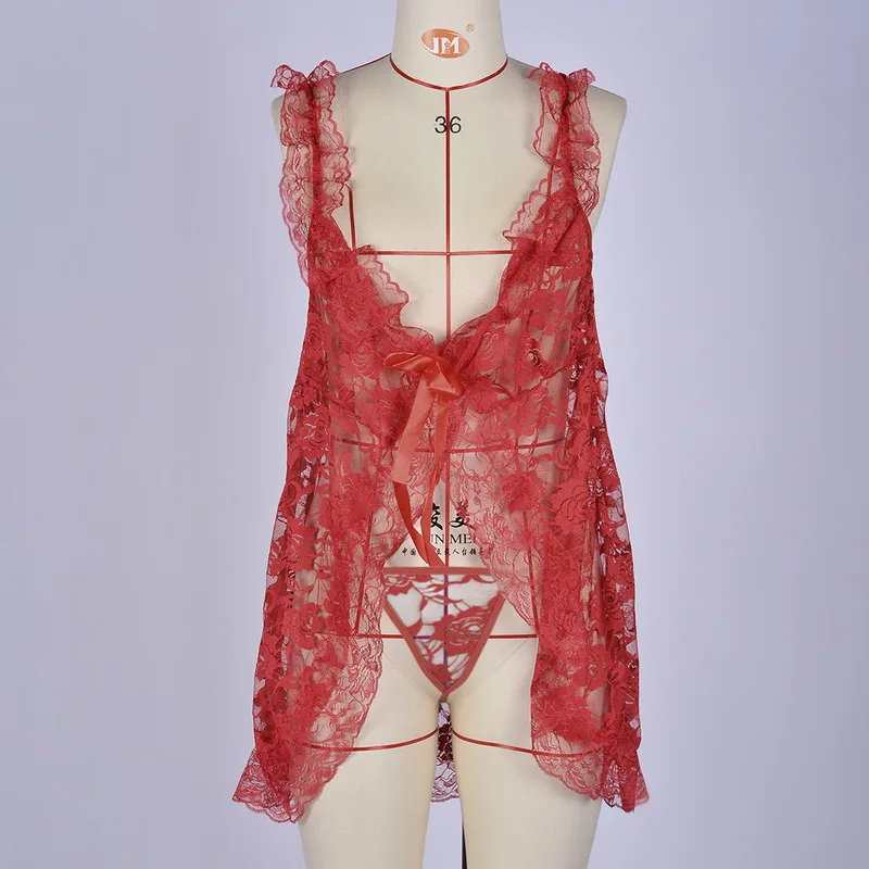 2021 Сексуальная кружевная женская ночная рубашка с открытой спиной...