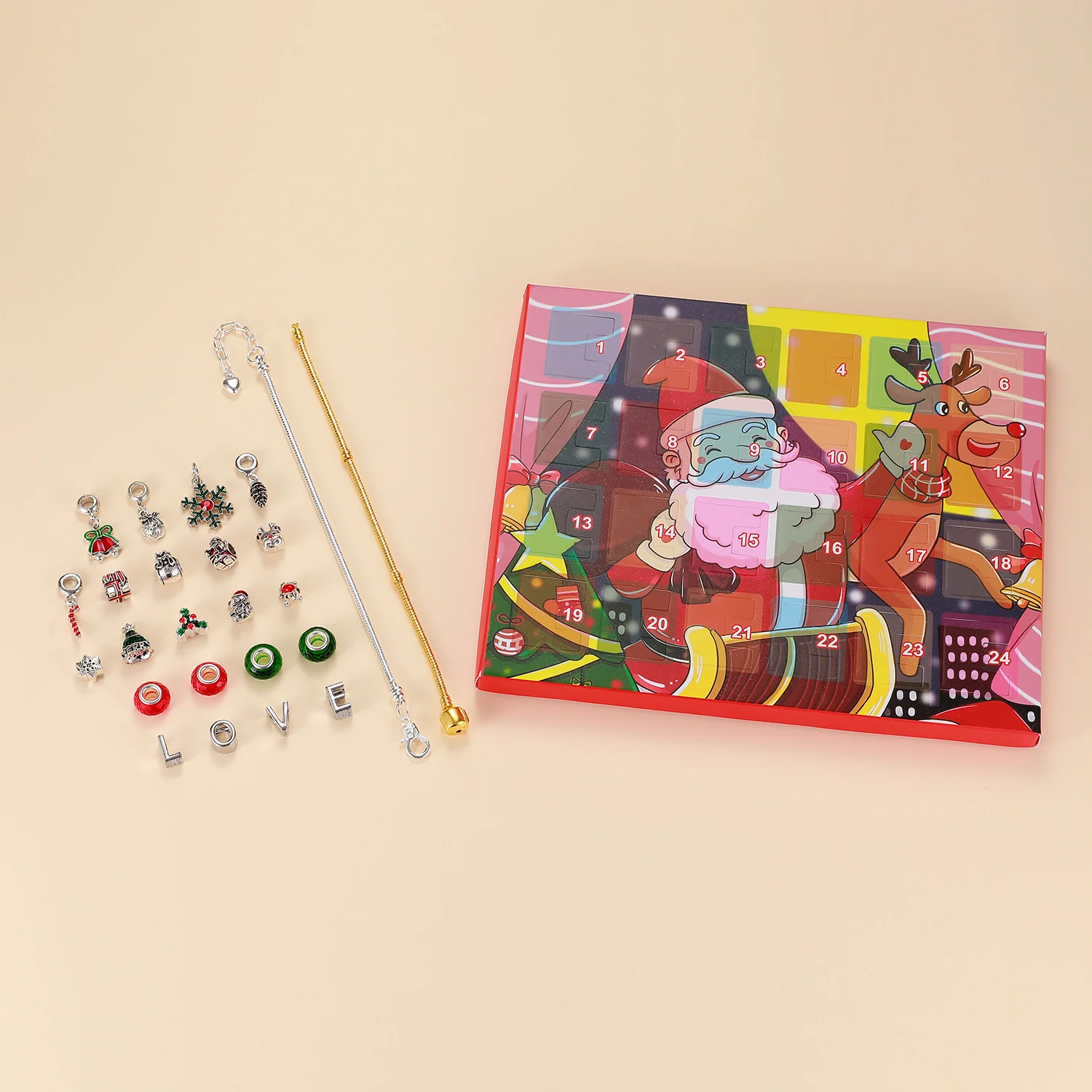 Рождественский календарь для девочек, 24 шт., подвески для браслето...