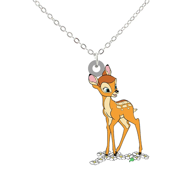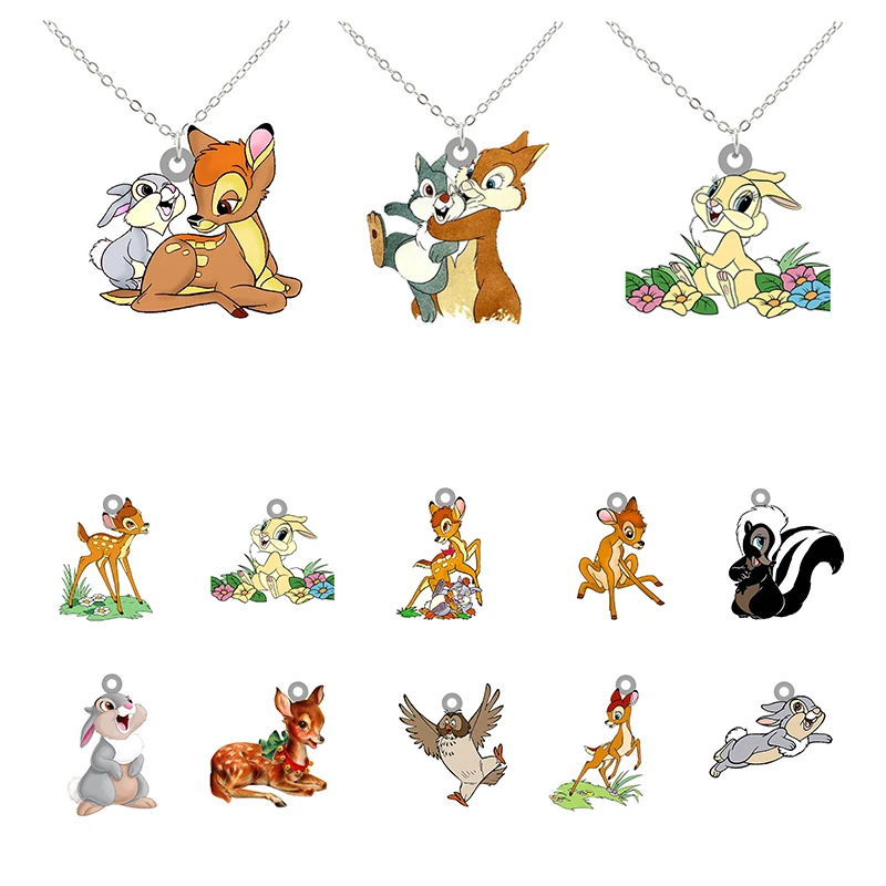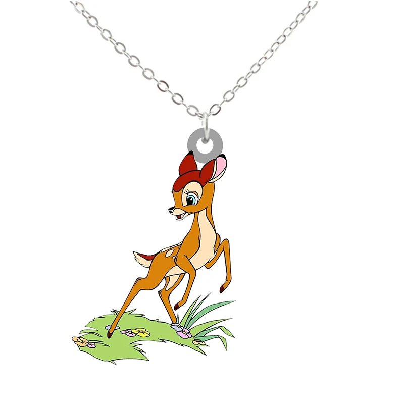 Disney олененка Бэмби и Банни Samp на длинной цепочке Цепочки и ожерелья с рисунками героев мультфильмов для школьников; Ожерелье в стиле "Аниме" Цепочки и ожерелья творческих акриловые Цепочки и ожерельяФотографии товара: