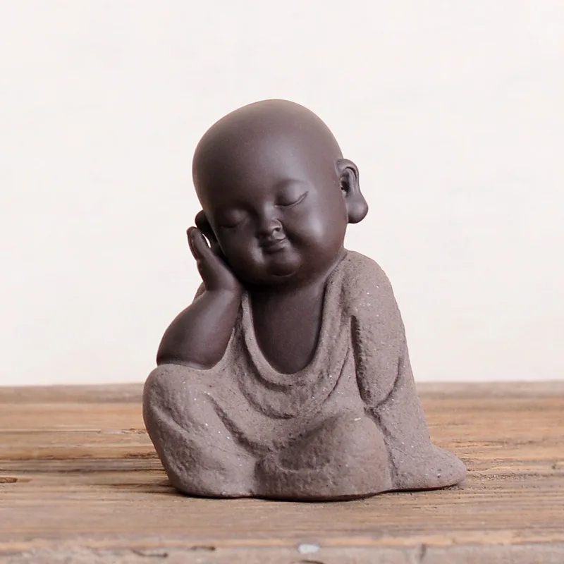 Маленькие статуи монаха Будды, разноцветные керамические статуи фиолетового песка для дома, клуба, чайного дома, геомантическое украшение, статуэтки, чай, питомец