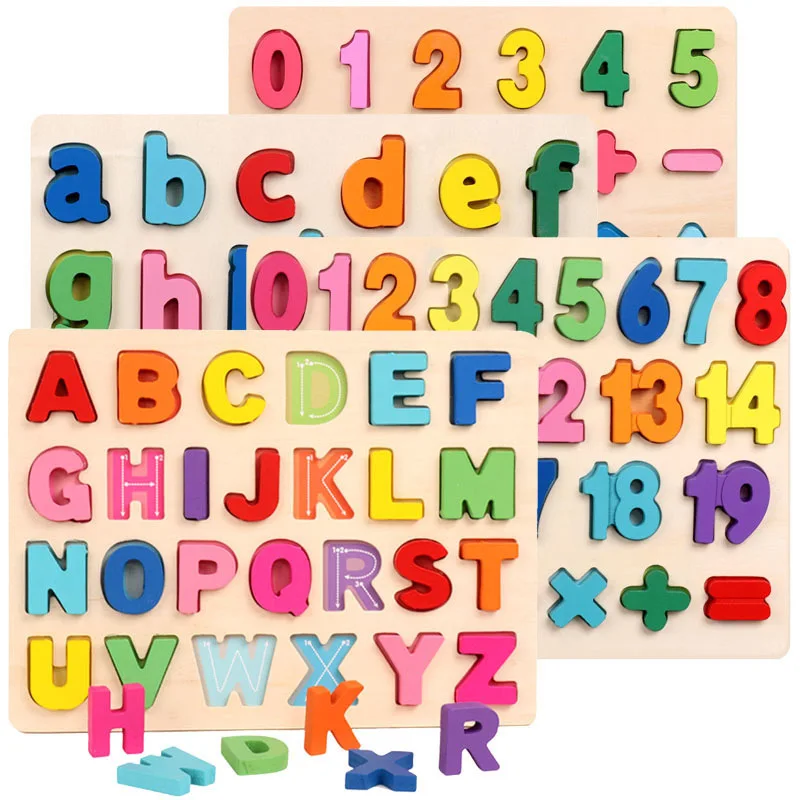 Детские деревянные головоломки, цифровые игрушки, детский ранний обучающий пазл с буквенным алфавитом, цифровая доска для дошкольников, Монтессори, математическая образовательная игра