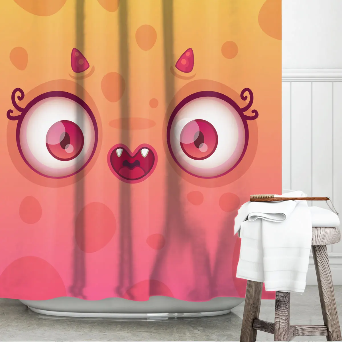-Изготовлен из 100% высококачественного полиэстера. Водонепроницаемый и устойчивый к плесени. Уникальный дизайн и цифровая печать ярких цветов, которые могут украсить вашу ванную комнату.