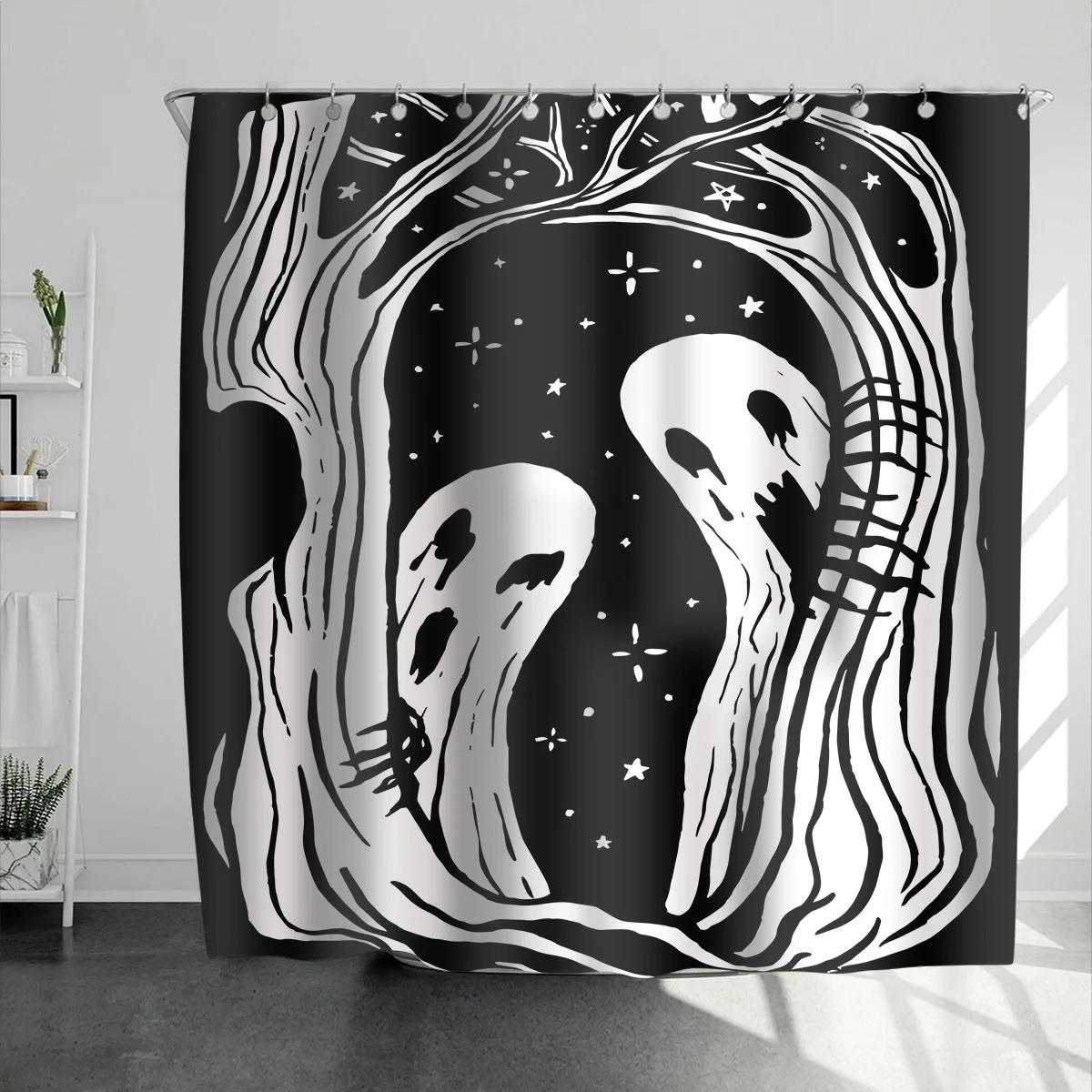 Blood, grid,scary bathroom curtainGhost, skull, dark,bone