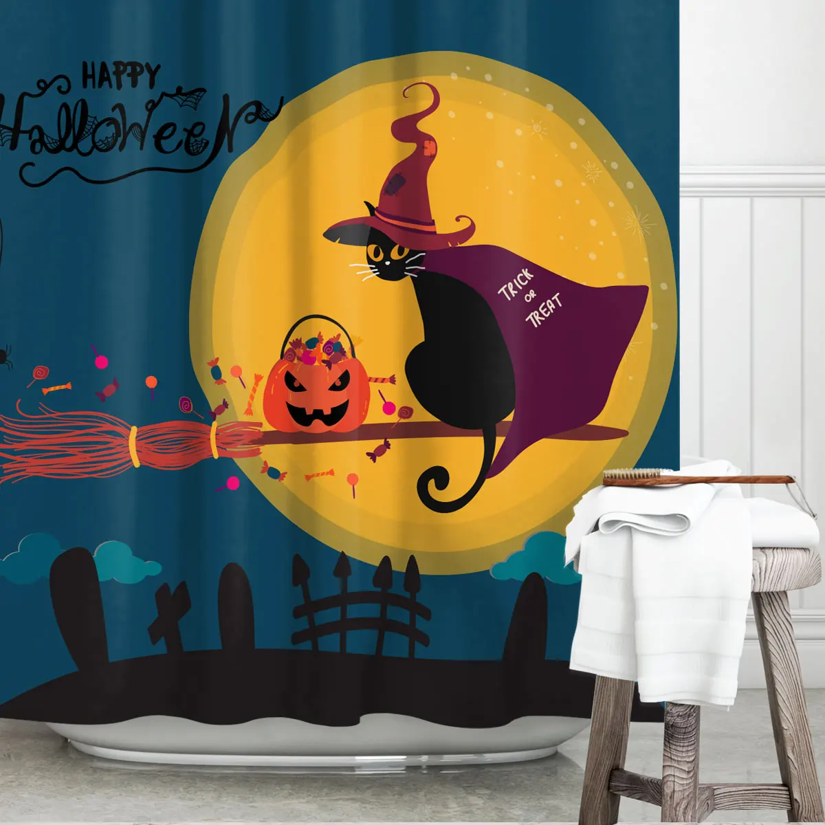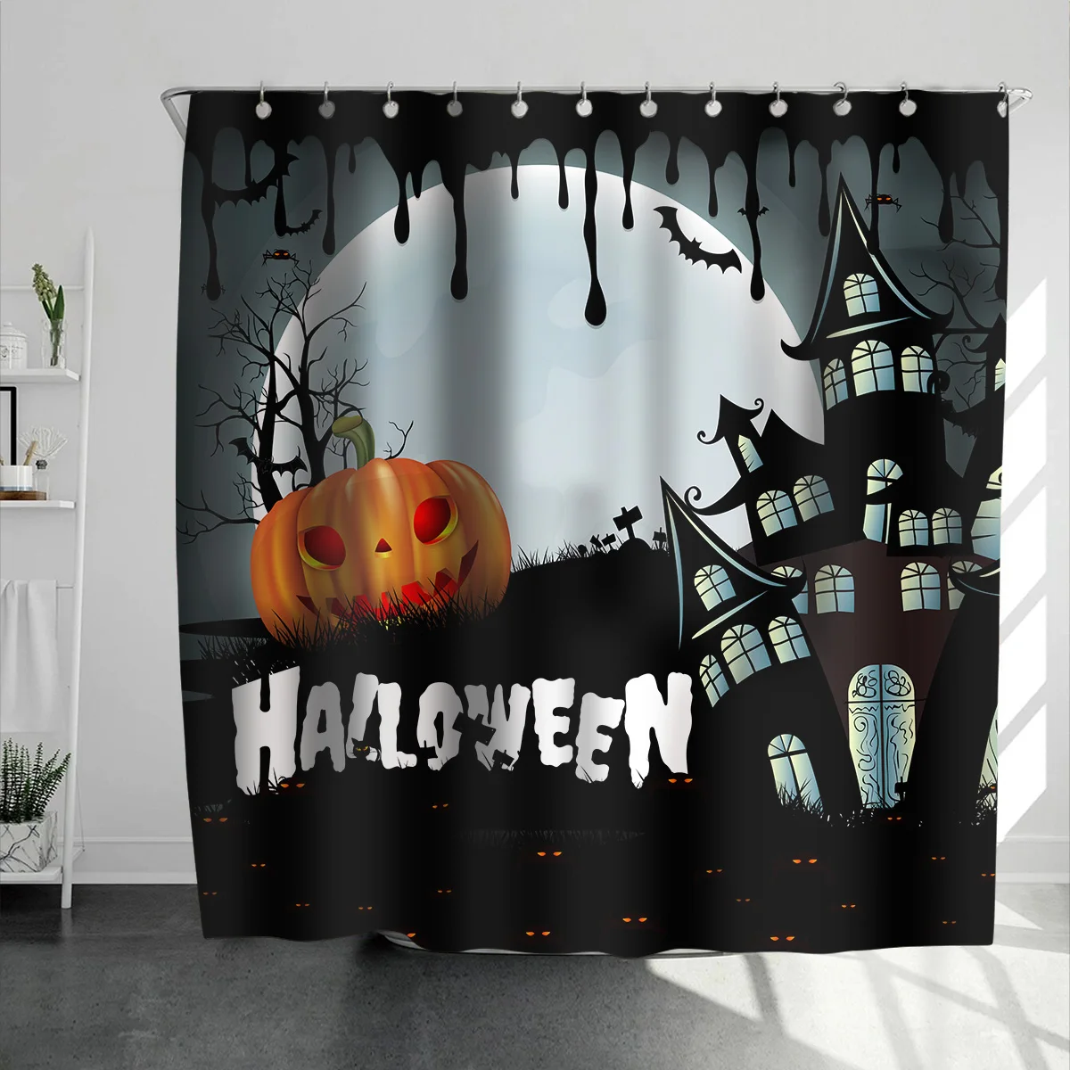 halloween bath, halloween shower curtainCortinas Para Salon