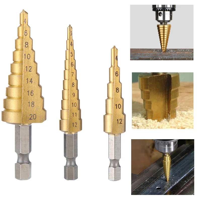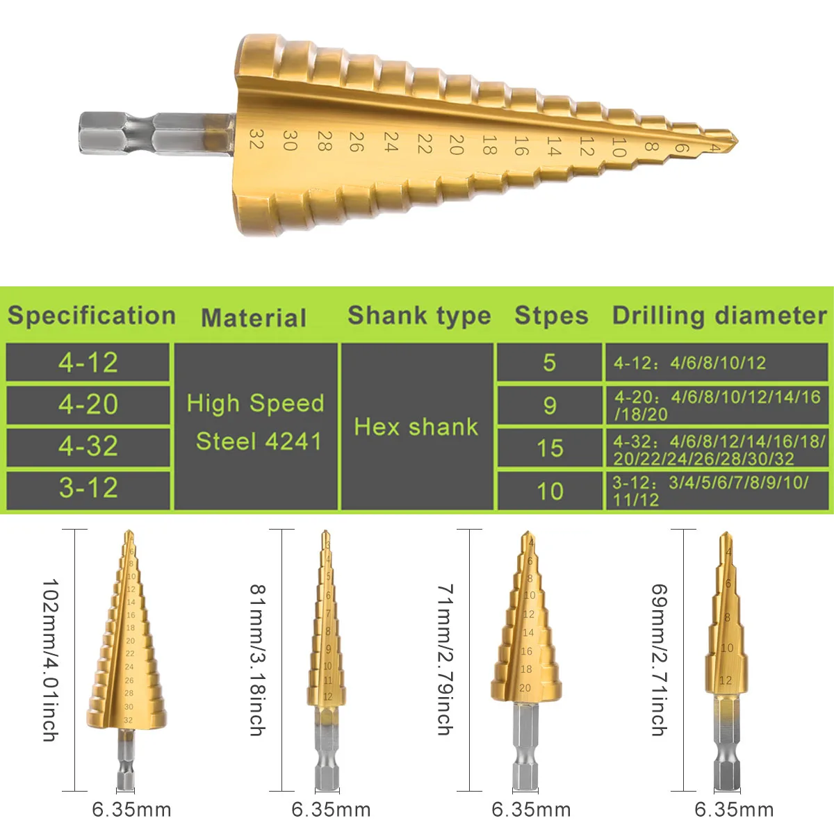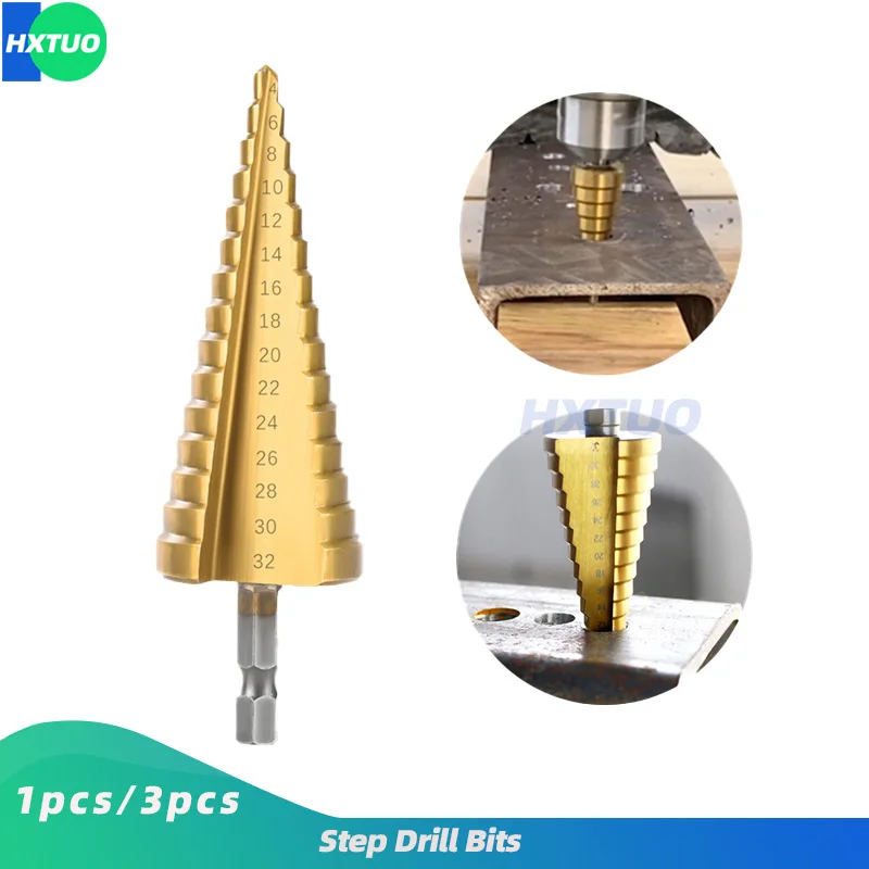 1Шт/набор, ступенчатое сверло из быстрорежущей стали с титановым покрытием для дерева и металла