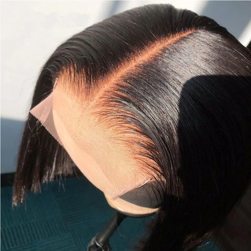 14-дюймовый короткий Боб шелковистый прямой бесклеевой кружевной пе...