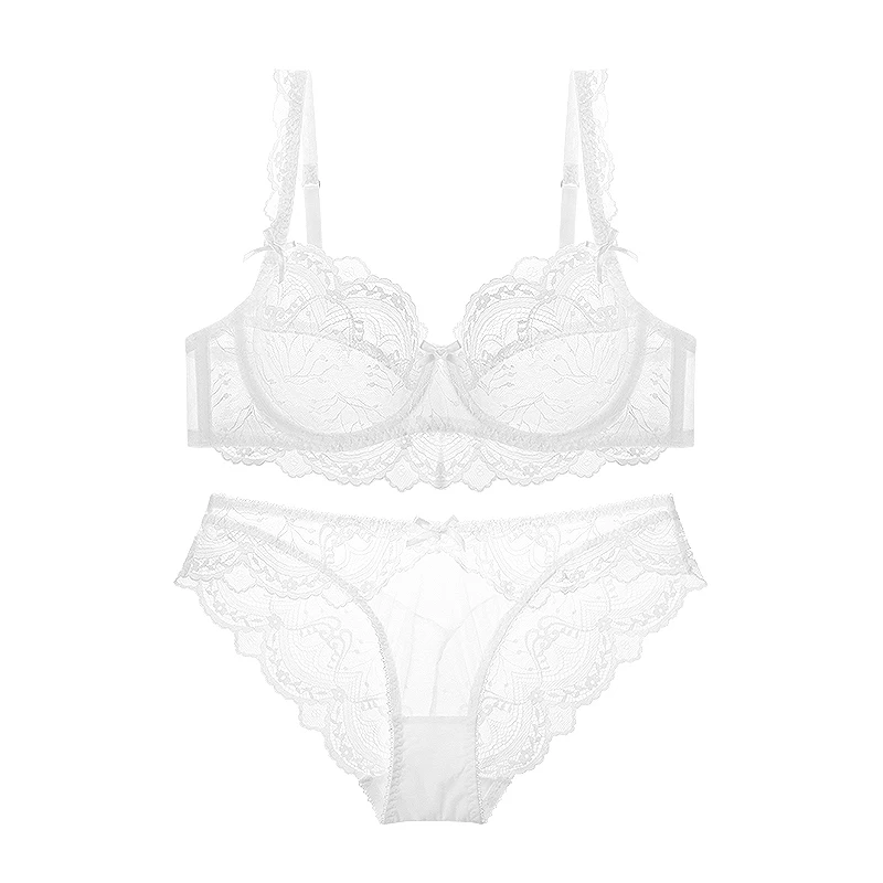 Белый кружевной бюстгальтер и трусики с цветочным рисунком, прозрачное нижнее белье, большие размеры, стальное кольцо, бюстгальтер пуш-ап, нижнее белье, женские чашки A B C D E