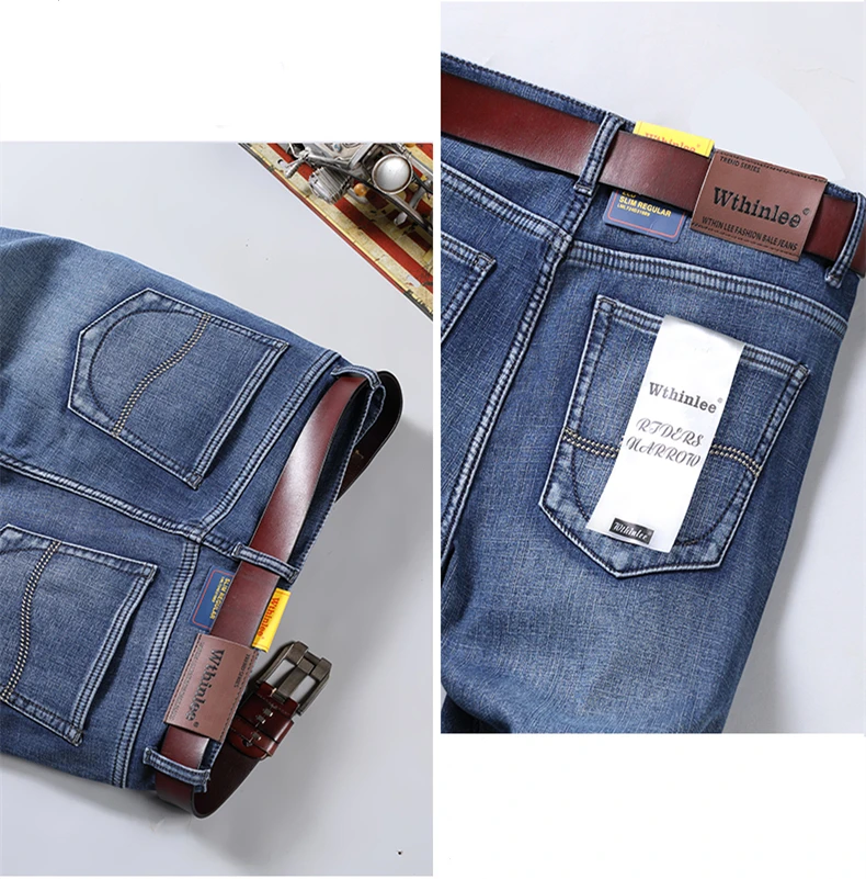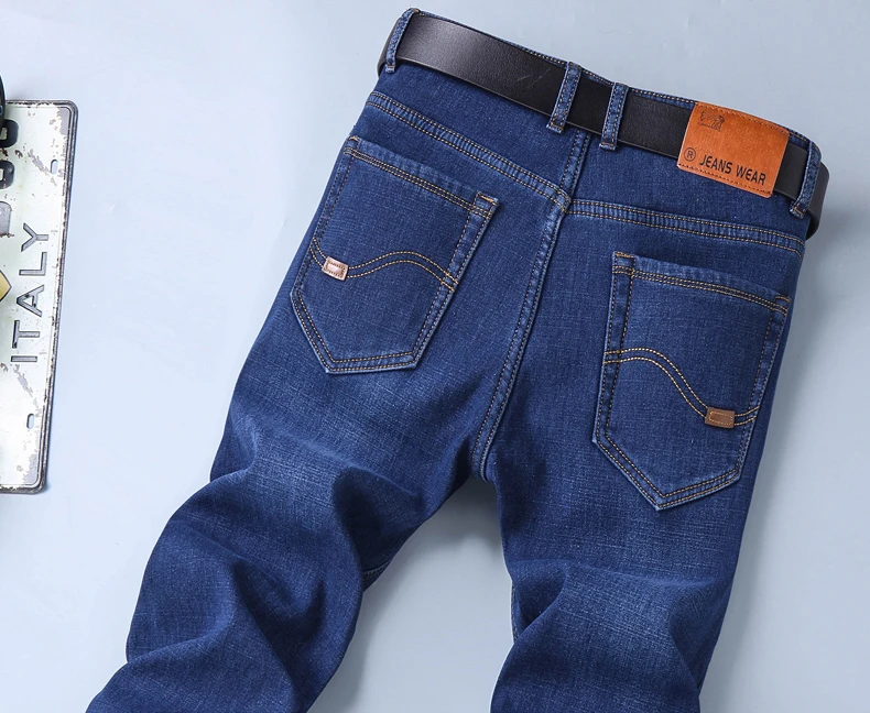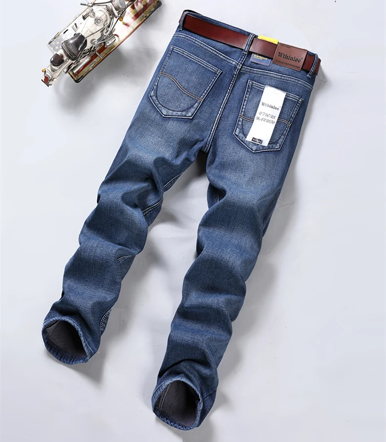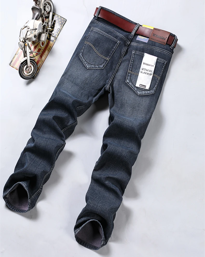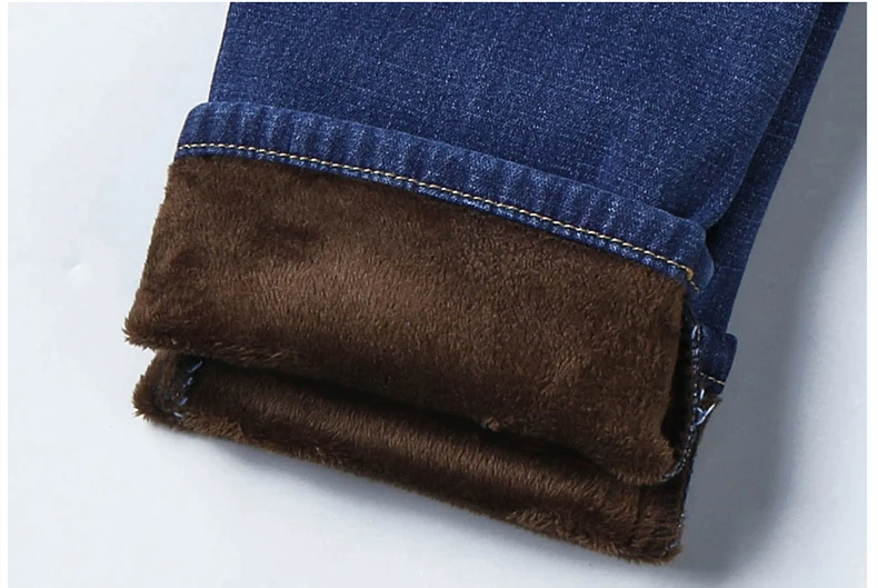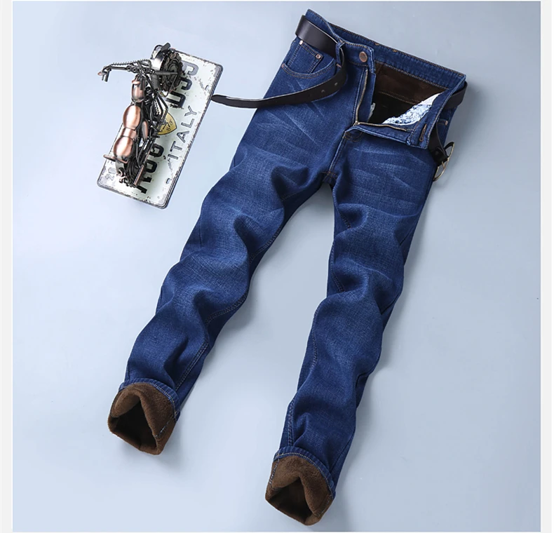 Классические Брендовые мужские флисовые теплые джинсы, деловая мода, зимние плюшевые плотные джинсовые брюки, мужские эластичные свободные повседневные Прямые брюки