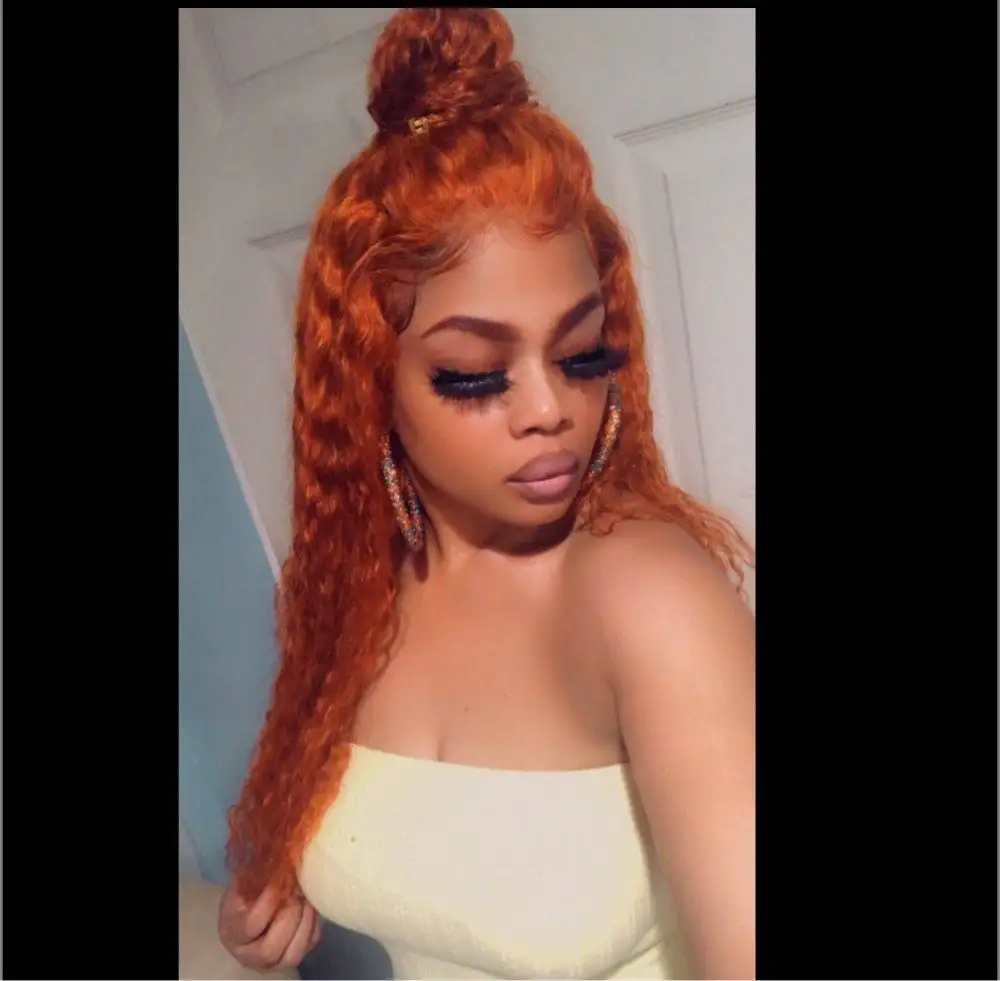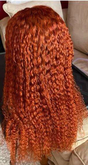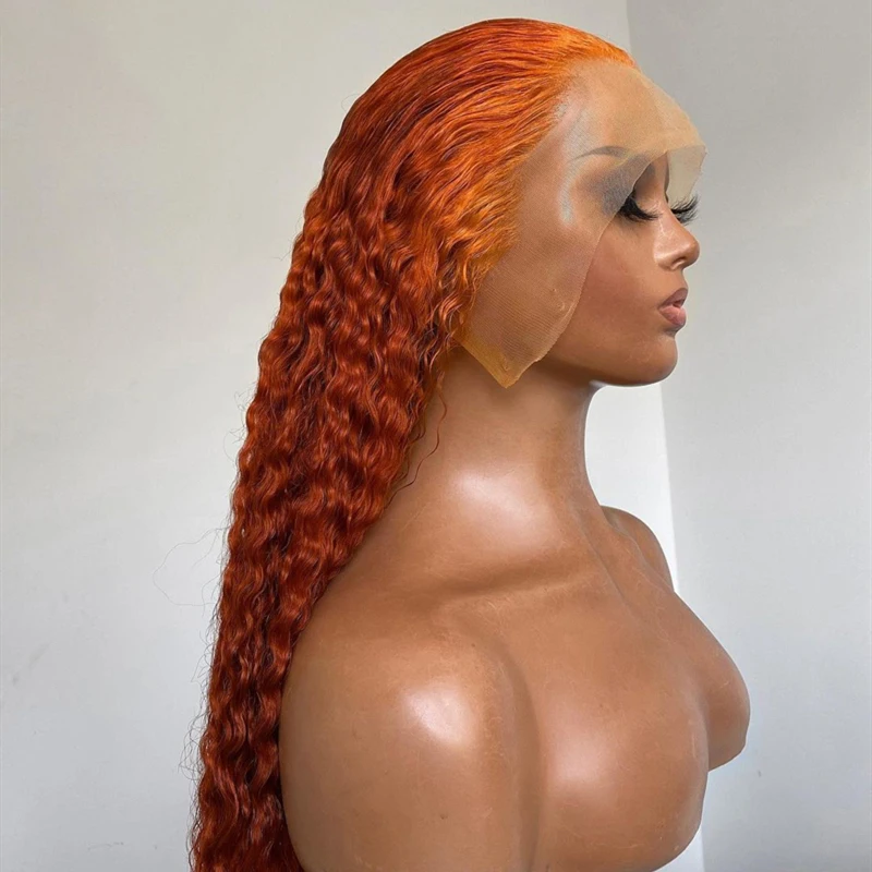 Искусственные волнистые кудрявые парики 13 х4 имбирного оранжевого цвета, парики из человеческих волос, подчеркивающие глубокие волны, парики на сетке 4 х4 для чернокожих женщин