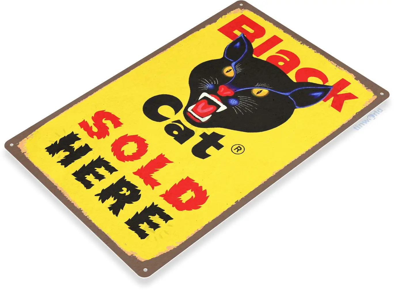 Жестяной знак C381, Черный кот, продается здесь, фейерверки, пожарники, 4 июля, новый год, фейерверк, стоячий знак icon star icon star icon star icon star icon star
