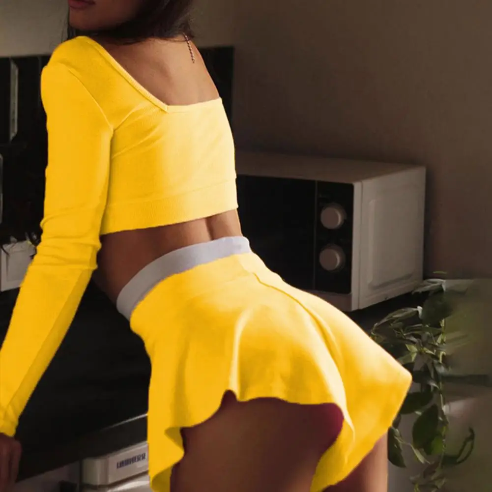 Трендовая Женская одежда, цветная спортивная одежда, Тонкий Повседневный тренировочный костюм с длинным рукавом, лоскутный топ, юбка-брюки, широкие шорты для фитнеса