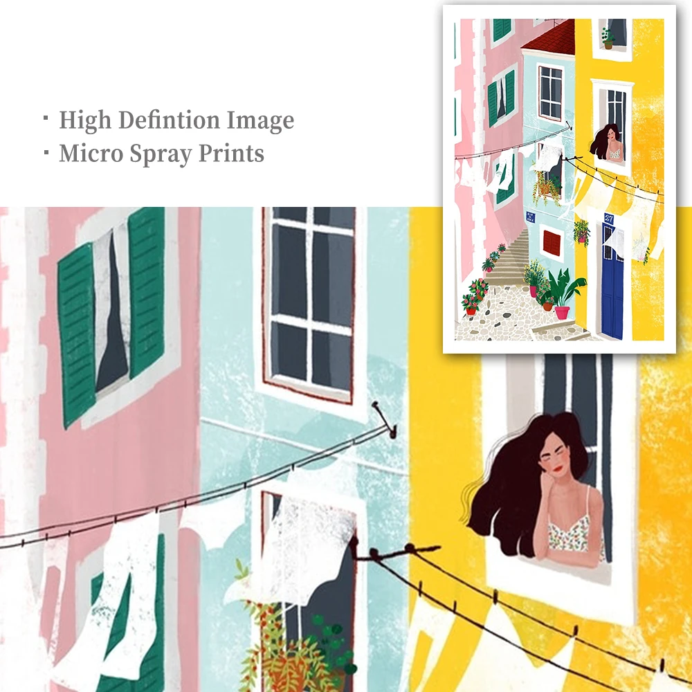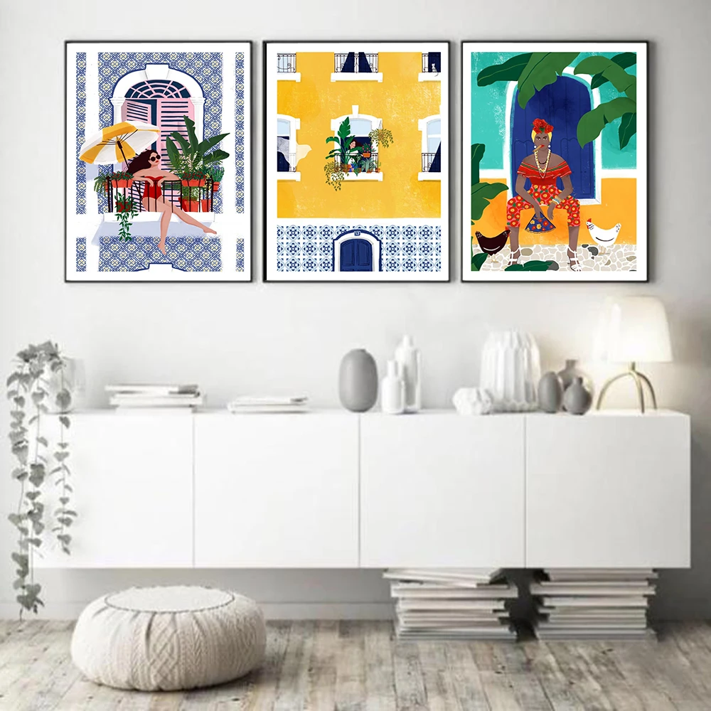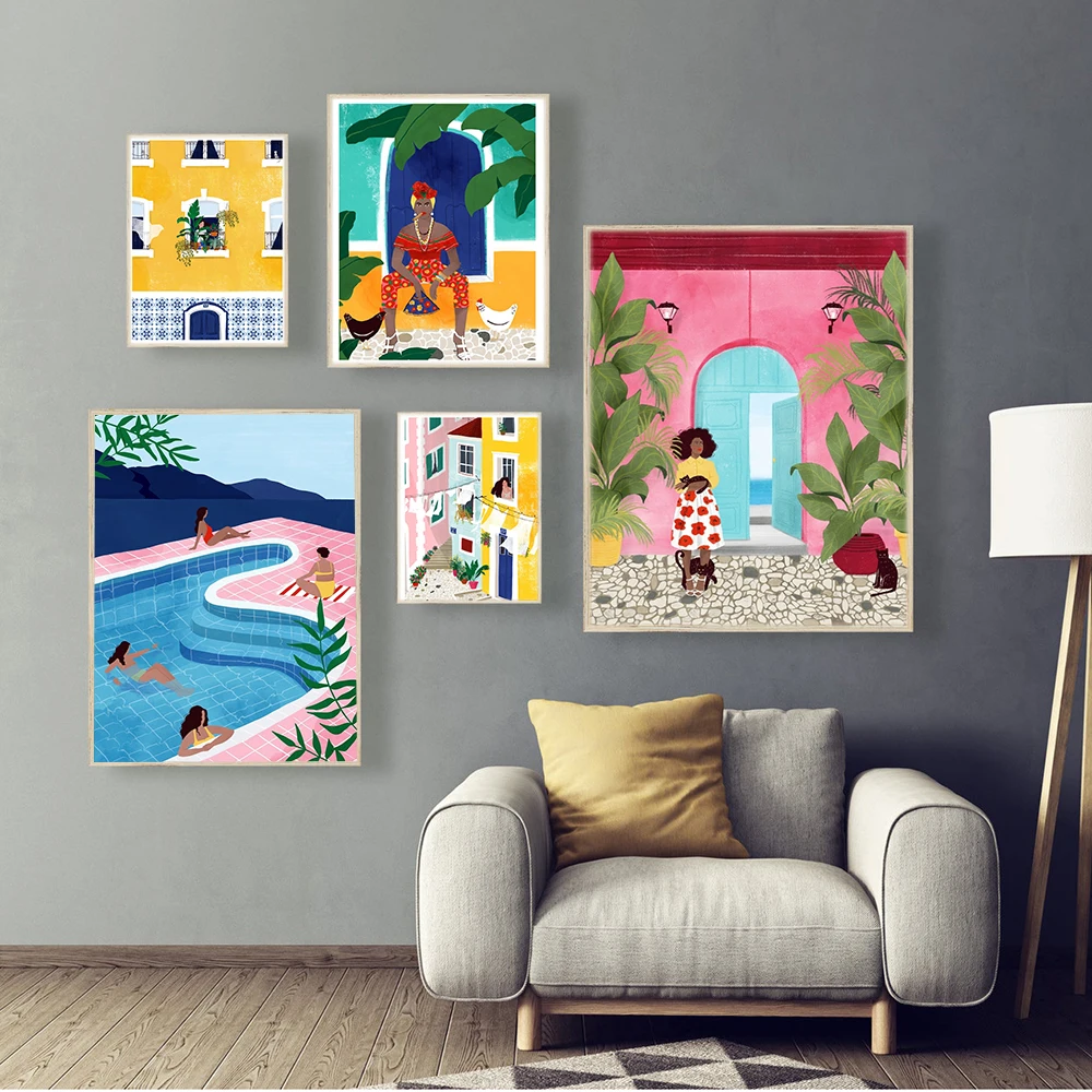 Абстрактная лиссабоновая девушка настенная печать Марракеш здание бассейн леди холст живопись скандинавский постер настенные картины для гостиной