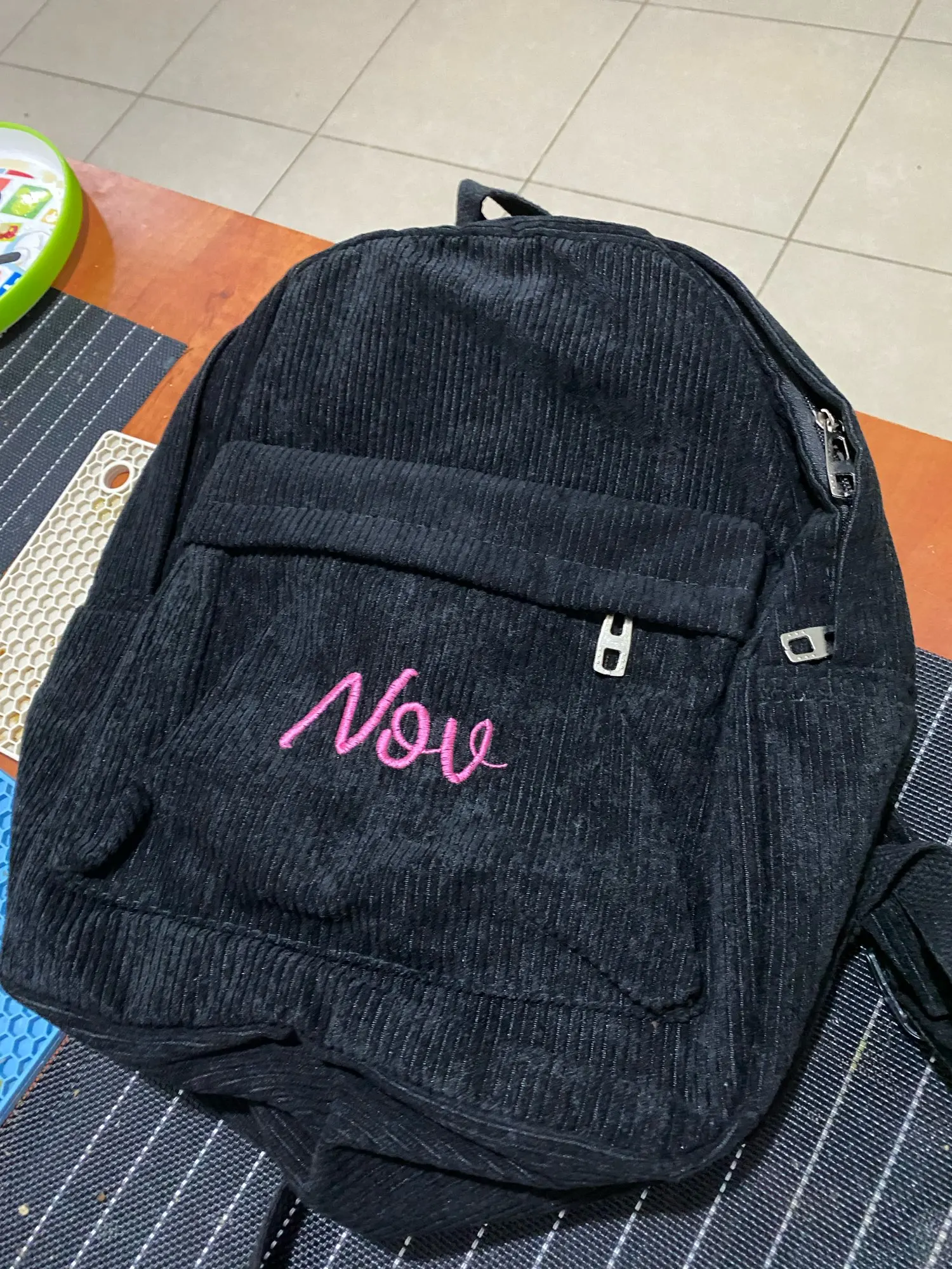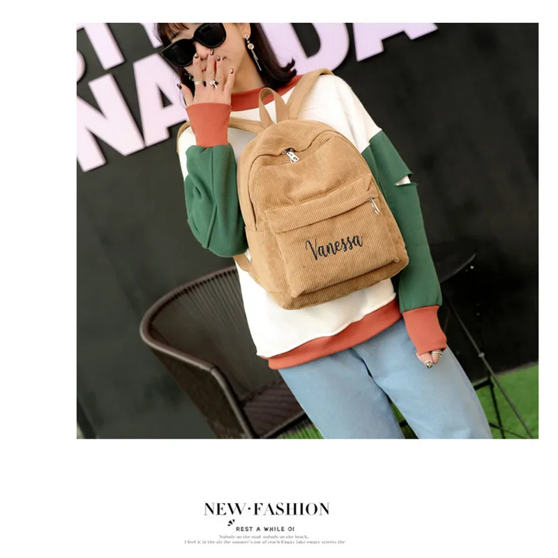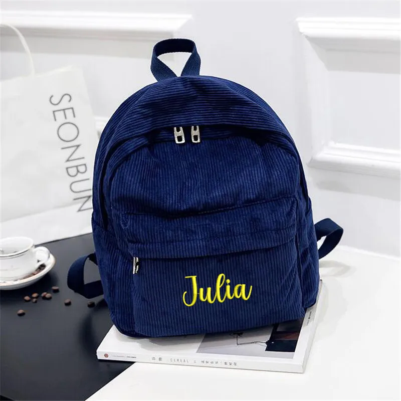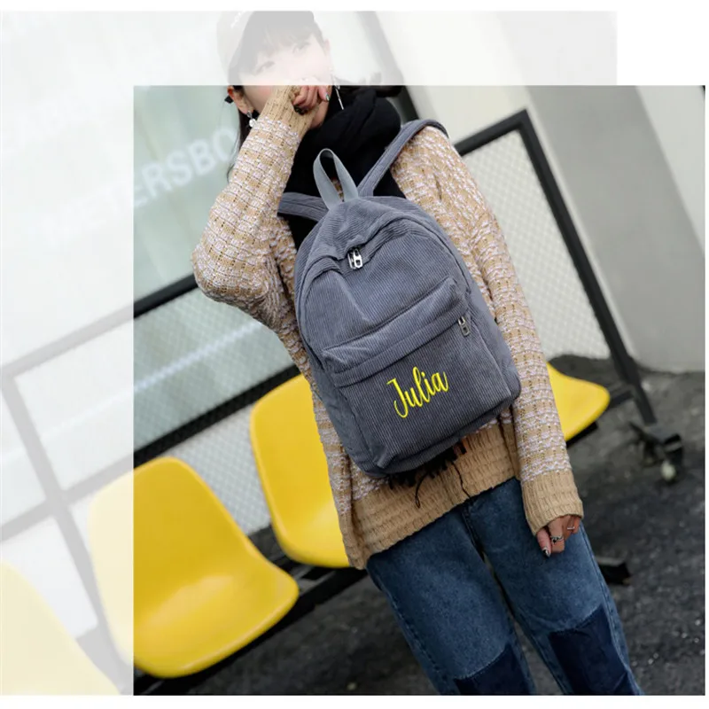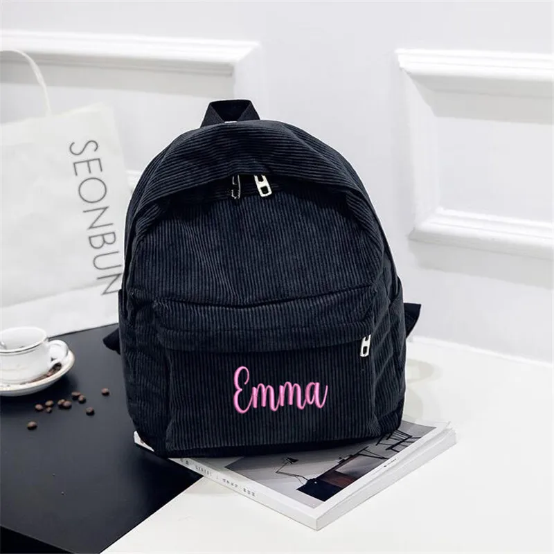 Школьный рюкзак, вельветовый, черный, темно-синий, хаки, с вышивкой