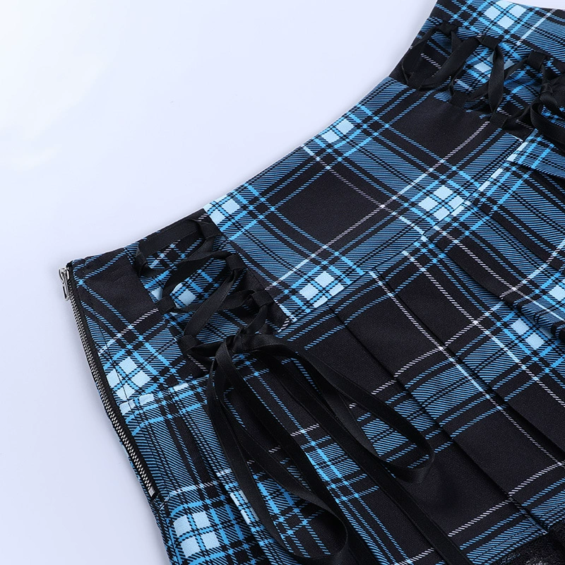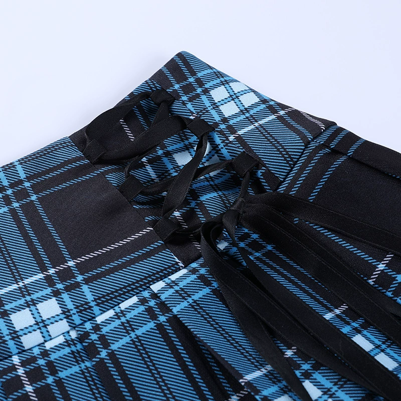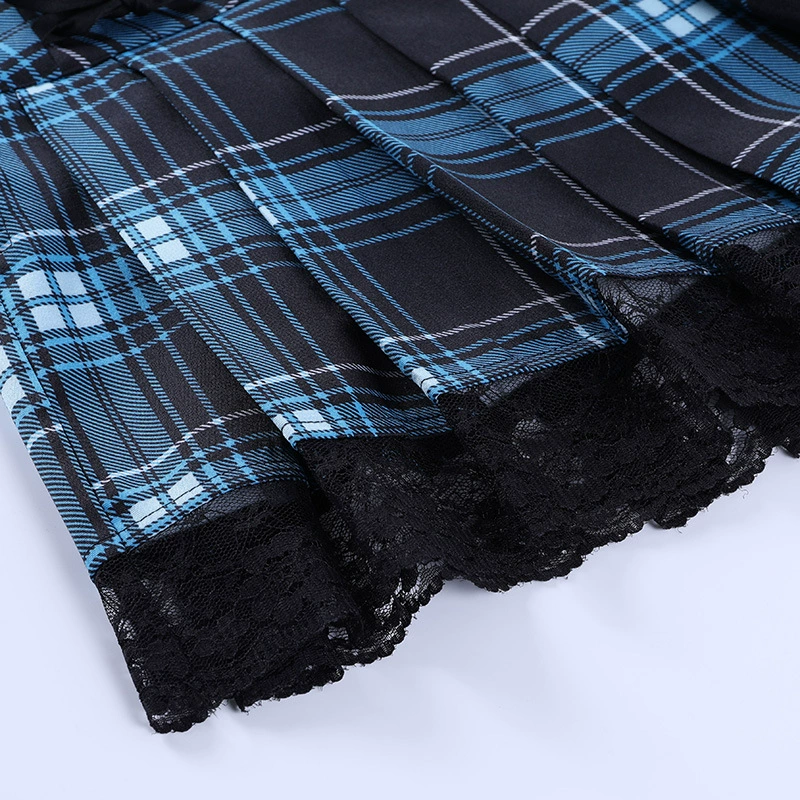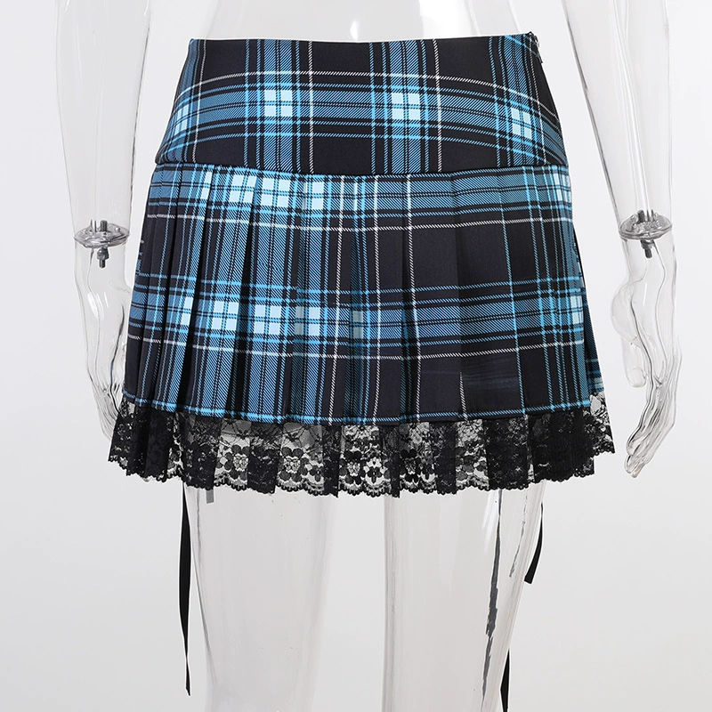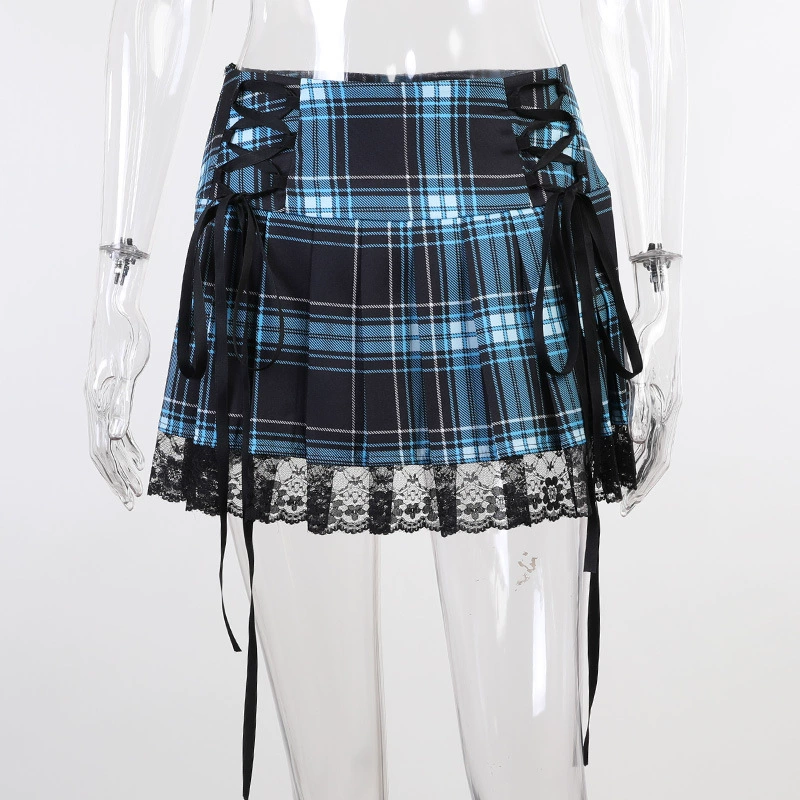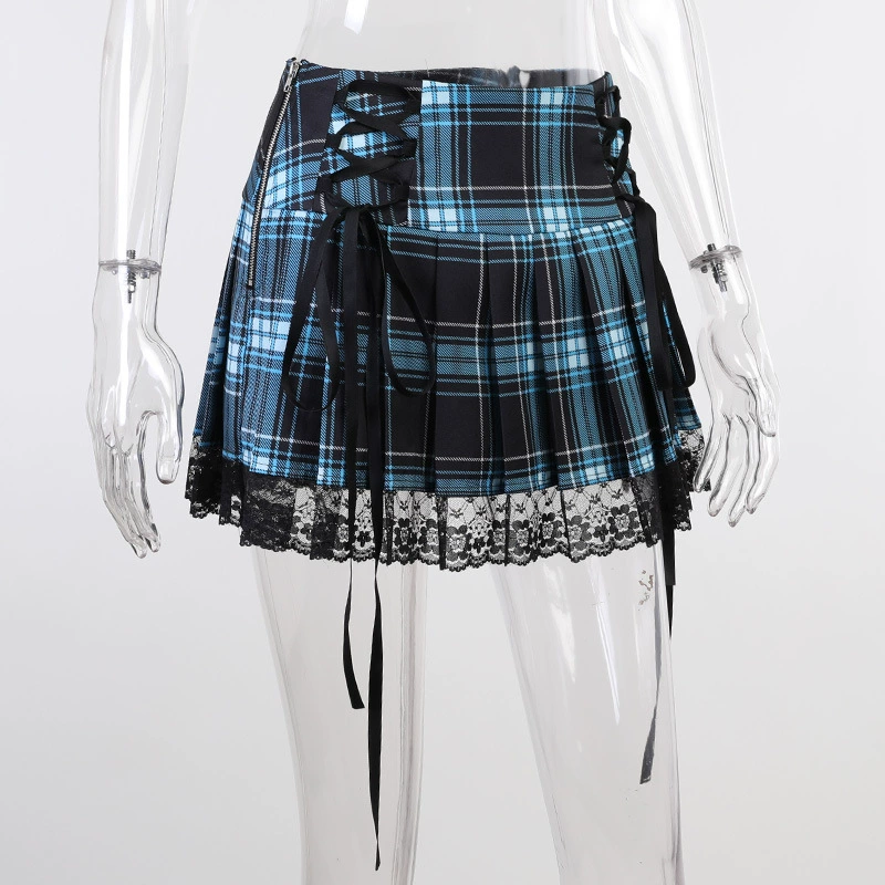 Юбка в готическом стиле, новая юбка в клетку с контрастными кружева...