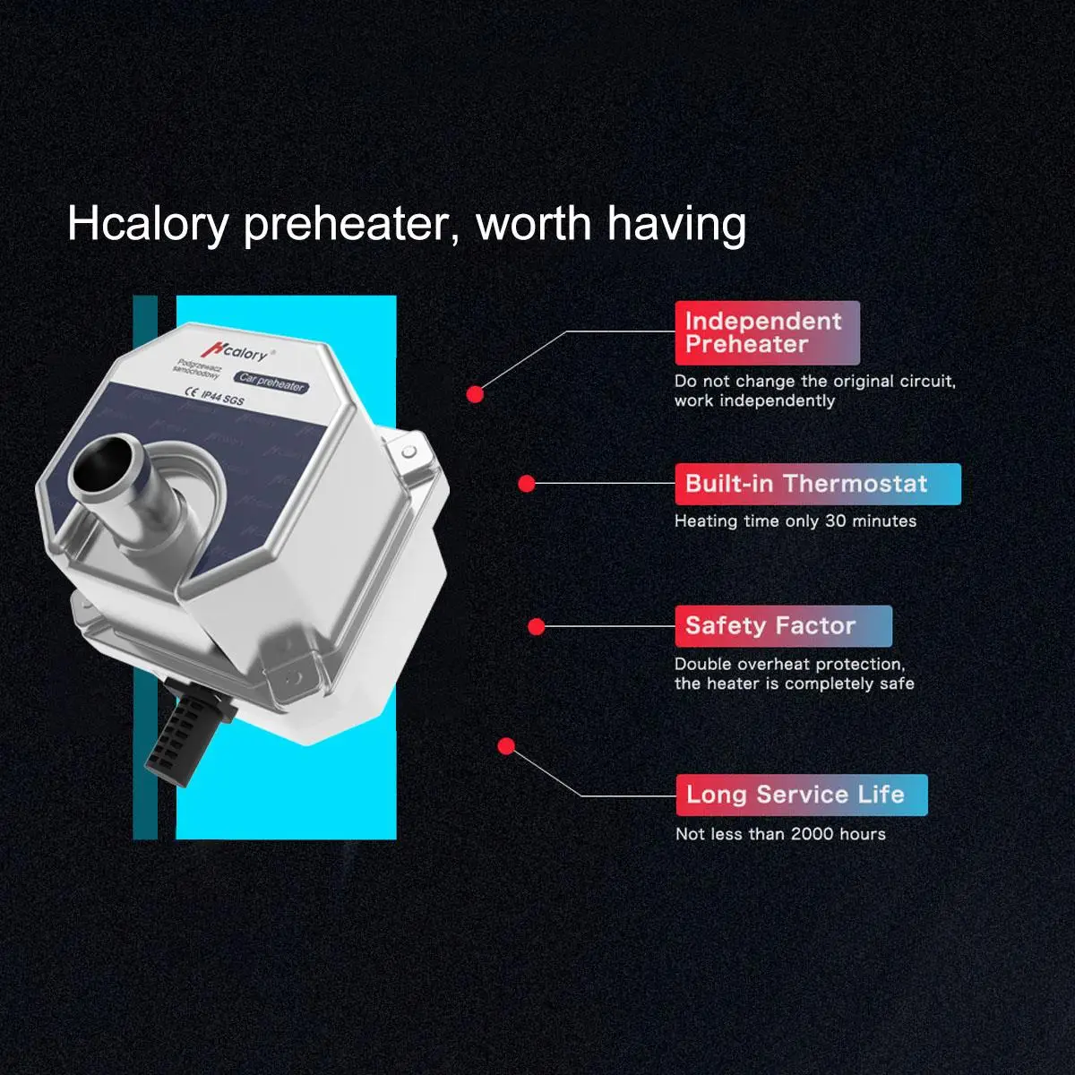 Предварительный нагреватель использует источник питания 220 В для циркуляции и нагрева антифриза через встроенный насос и электрический нагревательный элемент для улучшения температуры двигателя.