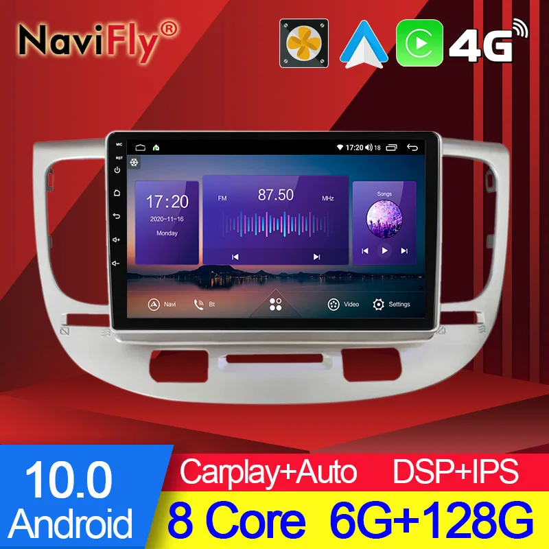 NaviFly 7862C 8 ядер 6G 128G 1280*720 Carplay Android 10 многофункциональная автомобильная интеллектуальная система для Kia RIO 2 RIO2 2005 - 2011